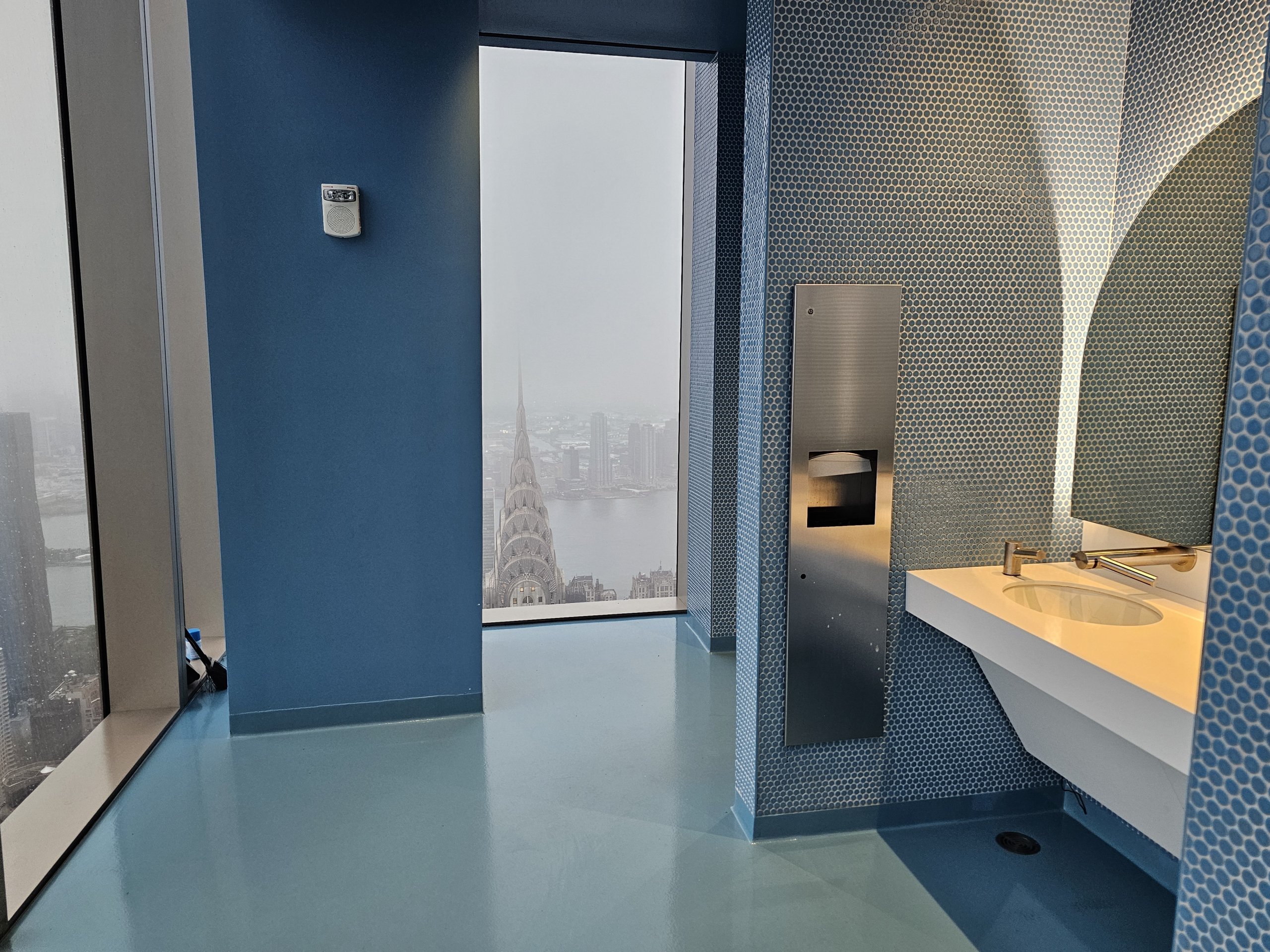 Įspūdingi Niujorko vaizdai atsiveria ne tik iš įprastų apžvalgos kambarių. SUMMIT One Vanderbilt beveik neabejotinai turi ir tualetus su geriausiais vaizdais visame pasaulyje.