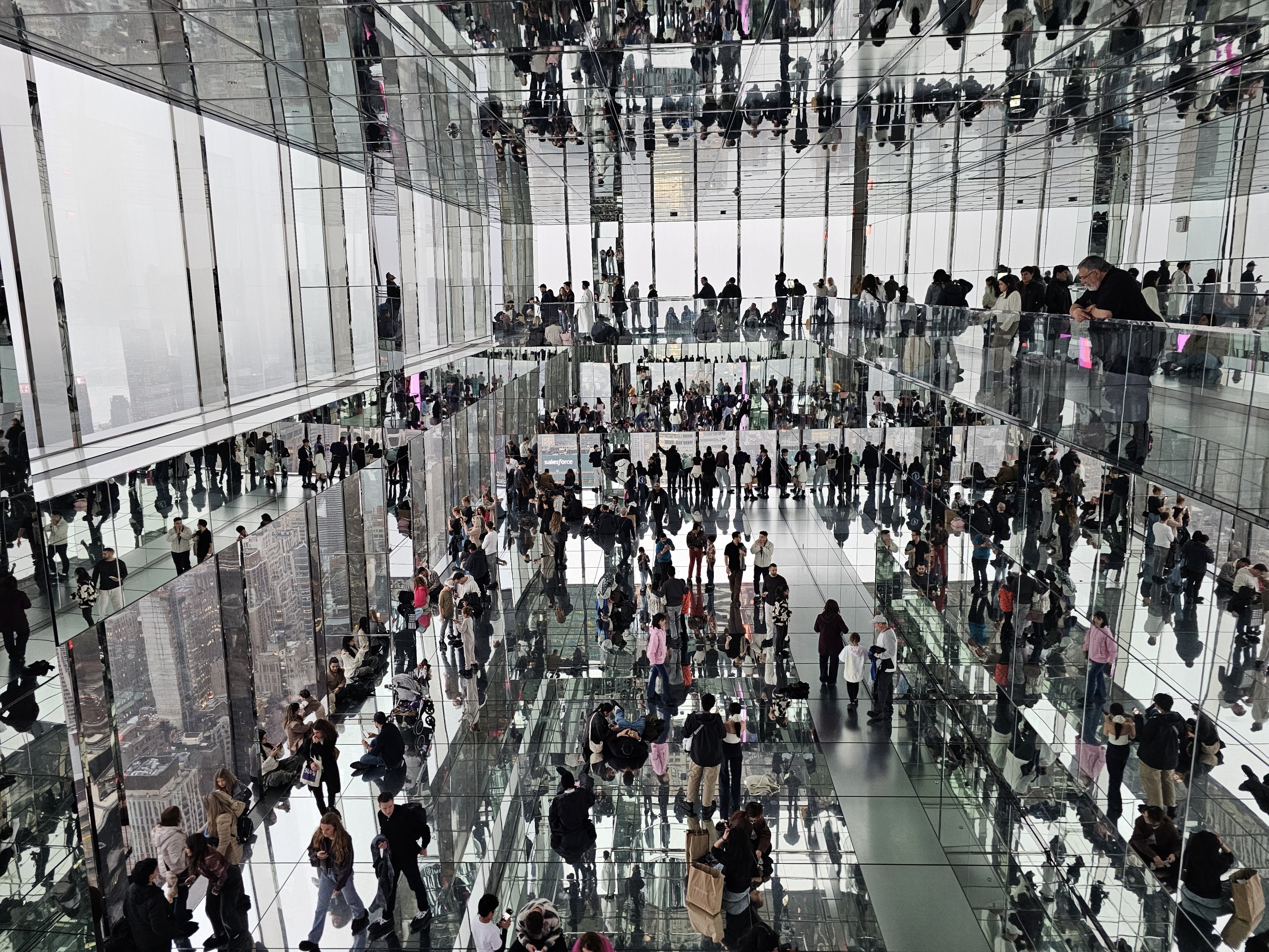Pats plačiausias yra pats pirmasis ir iš dalies antrasis apžvalgos aukštas, kuriame 30 375 kvadratinių pėdų plote galite patirti nežemišką milžiniškos veidrodžių salės atmosferą.
