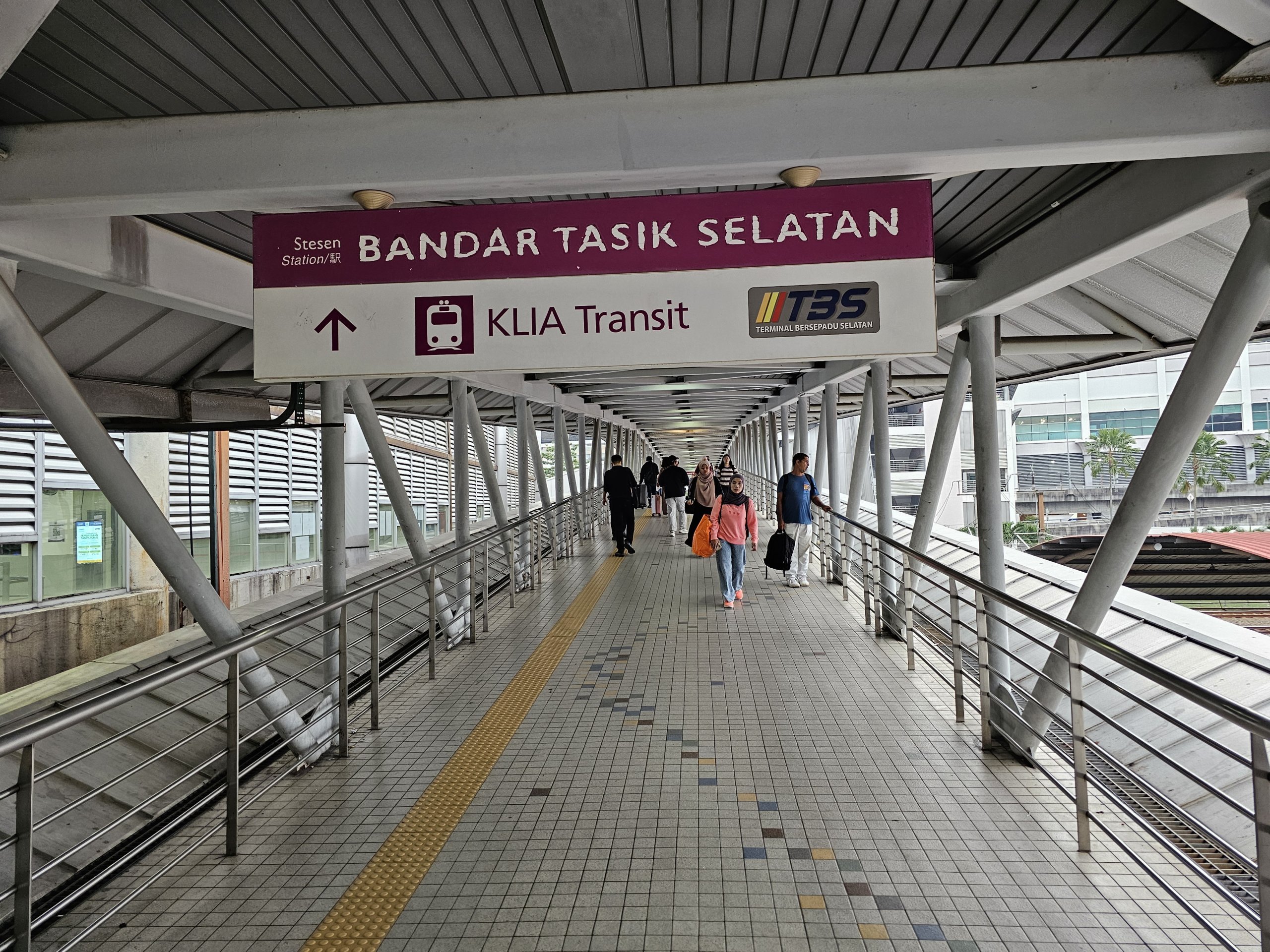 TBS lengvai pasiekiamas metro ir priemiestiniais traukiniais. Važiuokite į Bandar Tasik Selatan stotį: