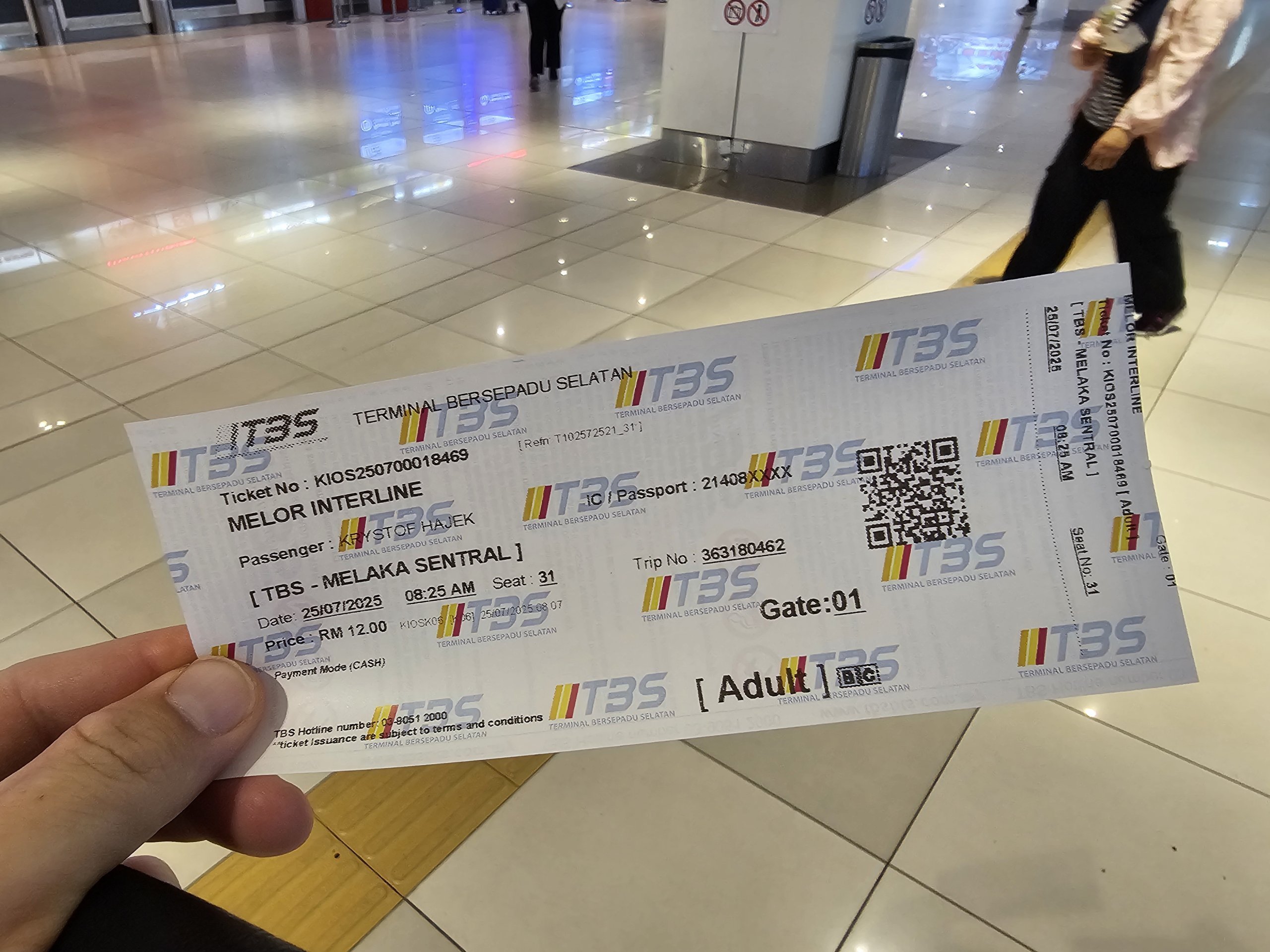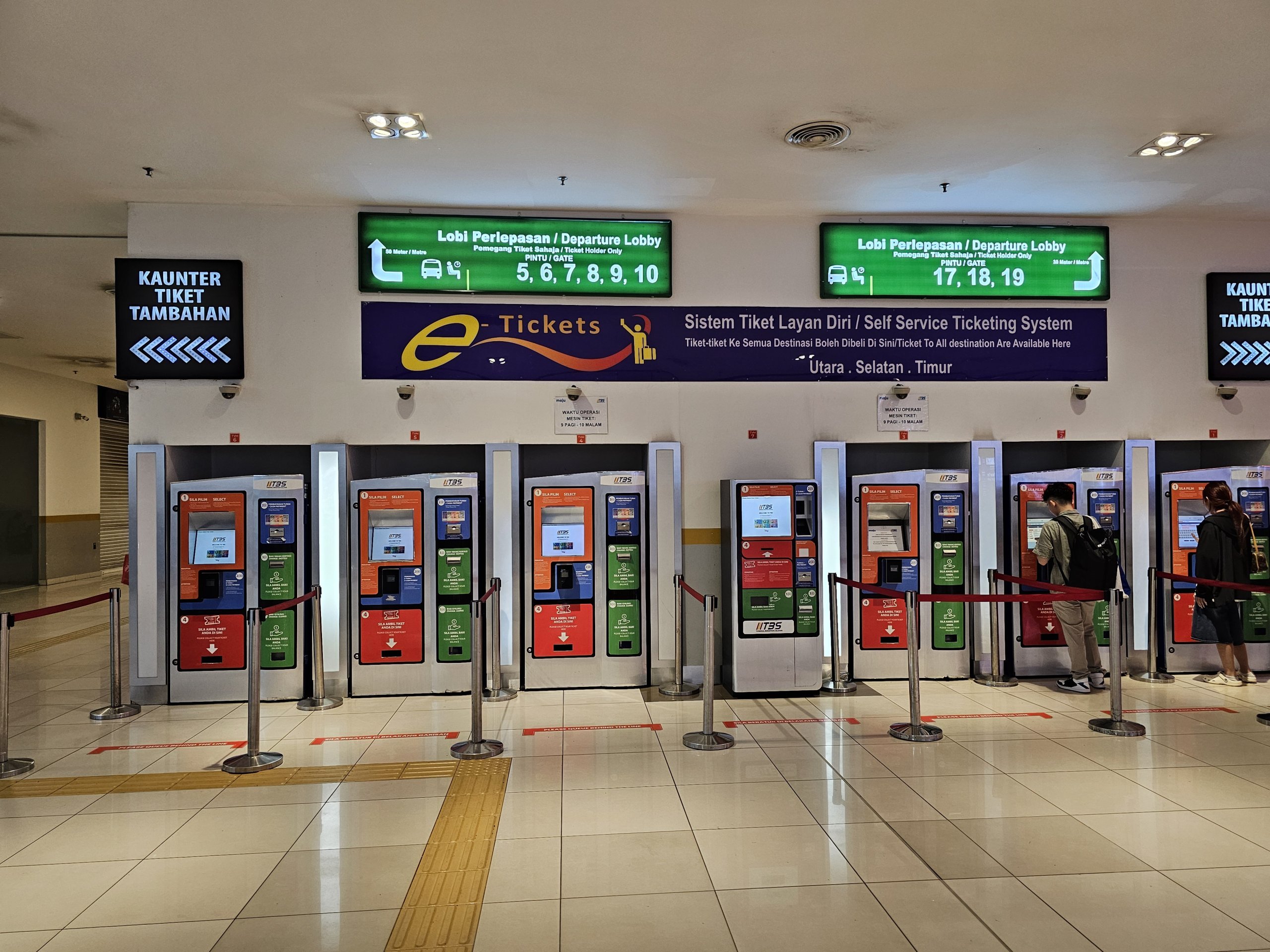 Tačiau bilietus galite nusipirkti prieš pat išvykimą iš bilietų automatų arba bilietų kasoje. Kvala Lumpūro autobusų stotyje galima atsiskaityti tik grynaisiais pinigais - ir bilietų kasoje, ir automatuose. Tačiau yra daug bankomatų.
