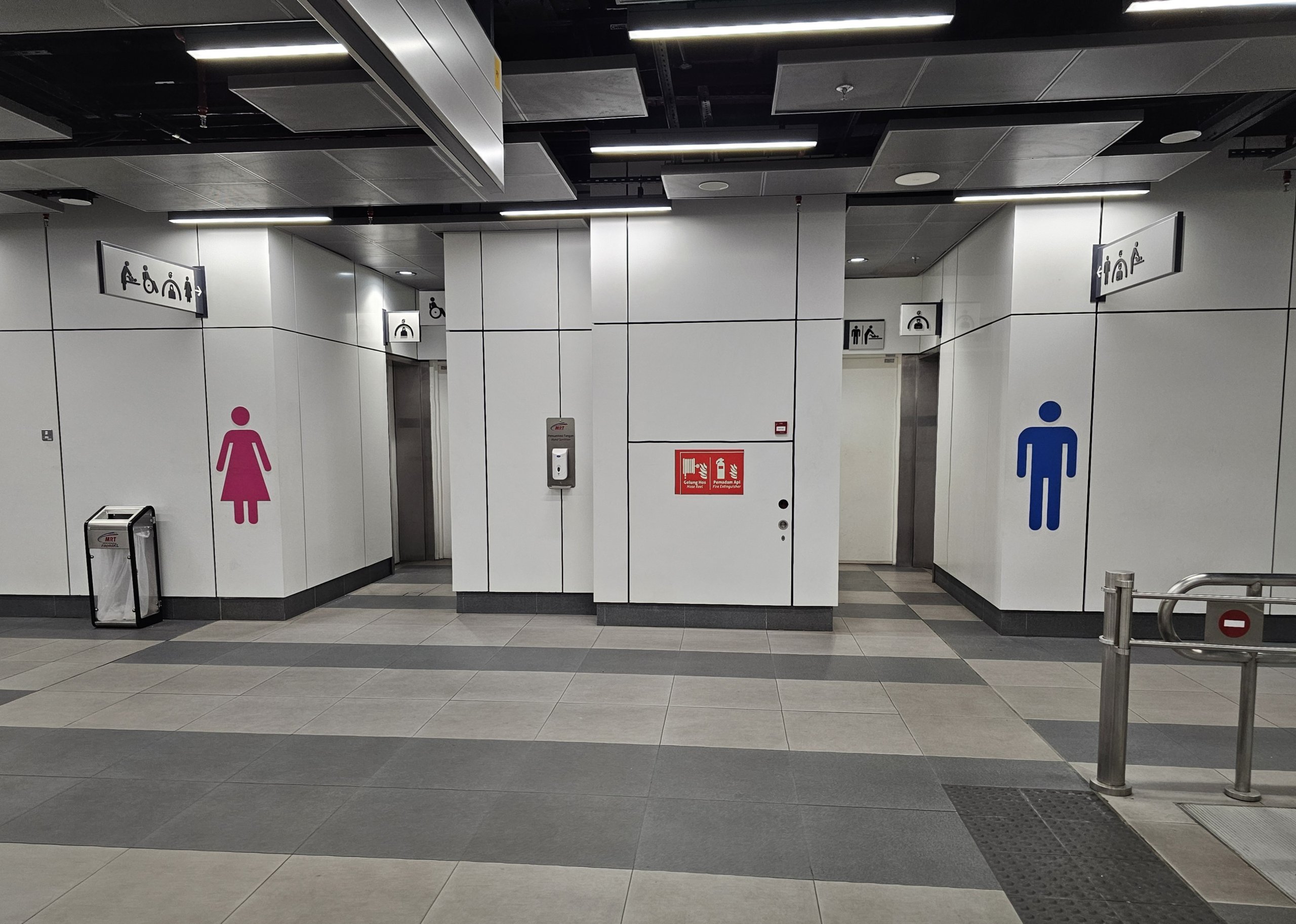 Naujausiose geltonosios linijos stotyse paprastai įrengti nemokami tualetai, tačiau kituose maršrutuose tai nėra standartas.