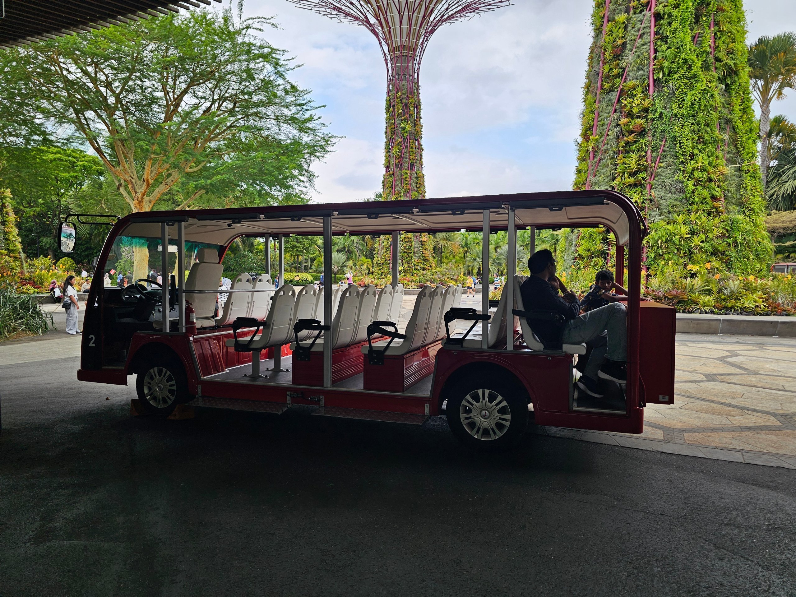 Prie pagrindinio įėjimo, esančio pietinėje pusėje (priešingoje pusėje nei Marina Bay Sands viešbutis), taip pat galite susimokėti už kelionę elektriniu vežimėliu už 10 sgd. Prie įėjimo taip pat yra spintelės bagažui laikyti.