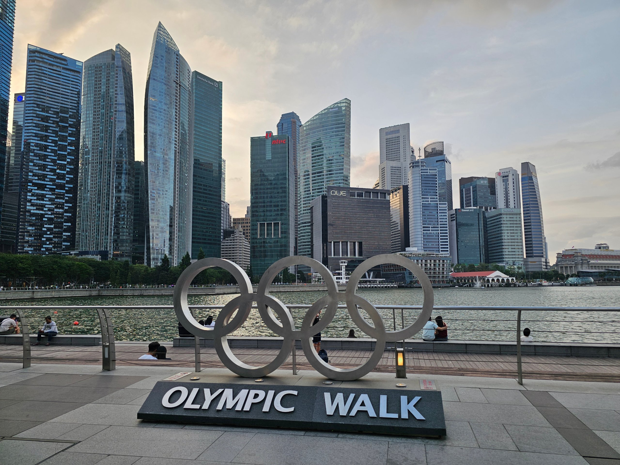 Plati pėsčiųjų promenada su palmėmis, kurios dalis vadinama Olimpine alėja, yra viena mėgstamiausių mano vietų Singapūre.
