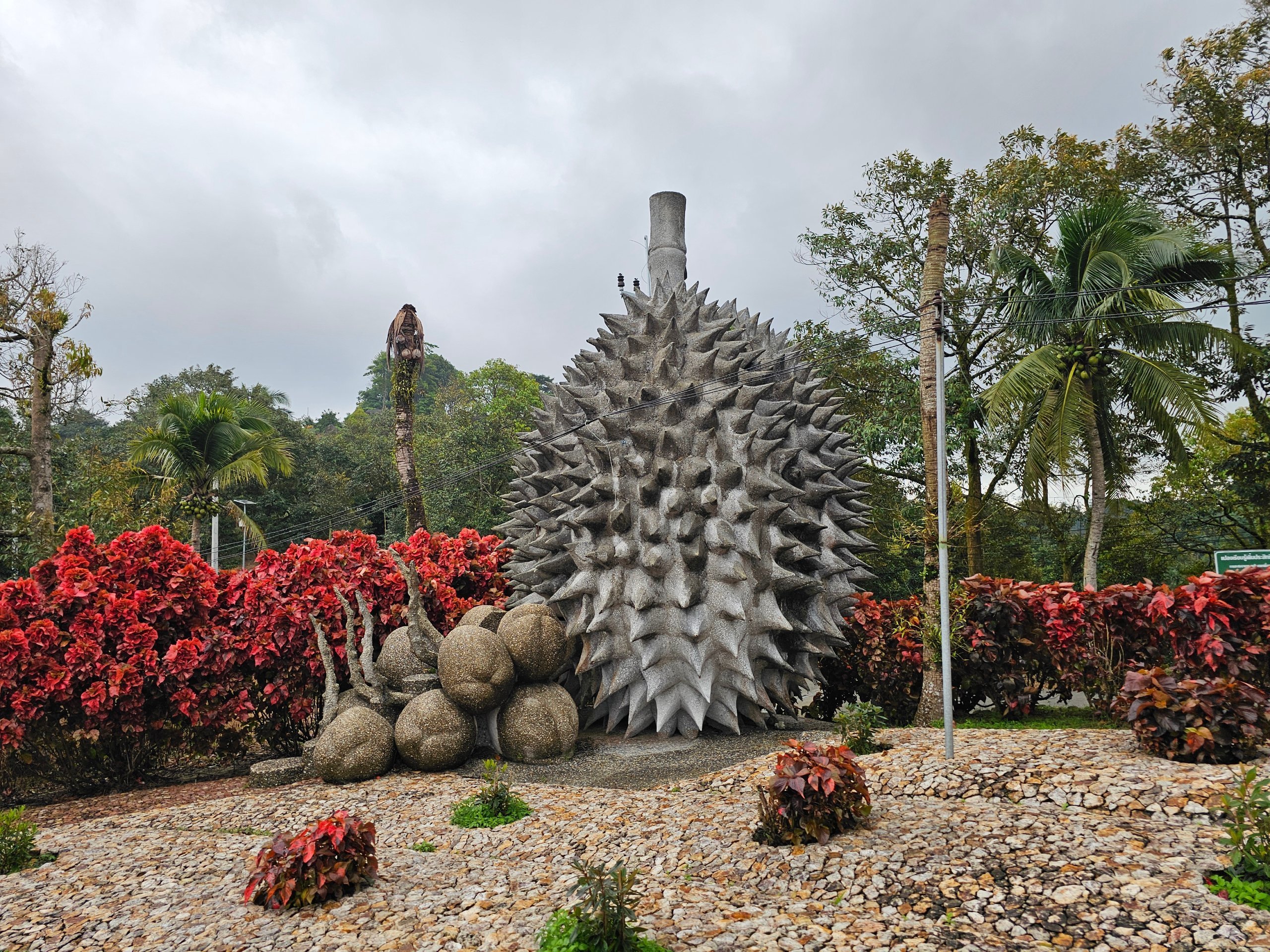 Šalia kelio rasite akmeninių "vaisių" (durianų, obuolių, ananasų ir kt.) kolekciją, kuri šiek tiek primena keistą sodą be aiškaus konteksto.