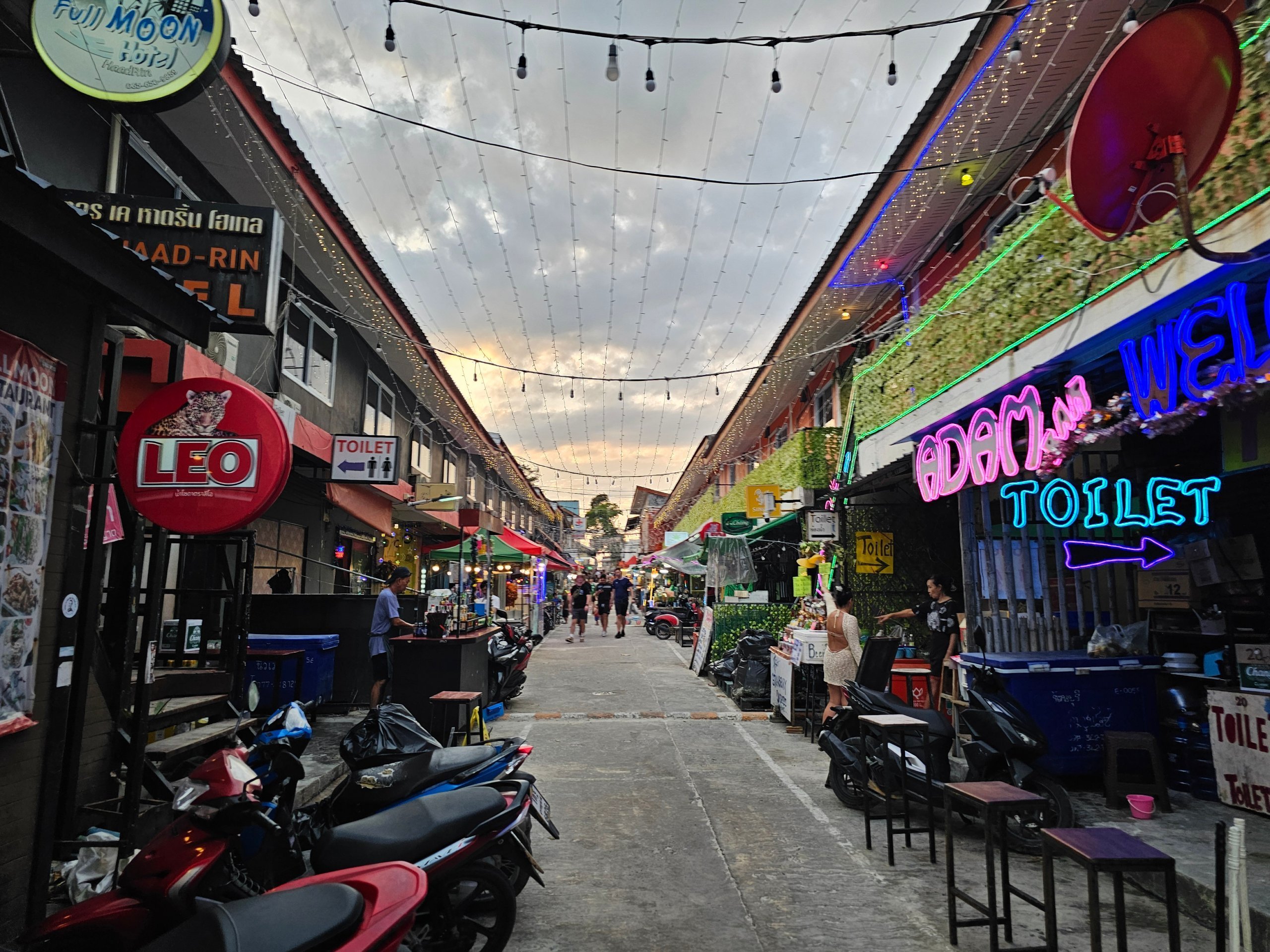 Haad Rin pėsčiųjų gatvė gyviausia per pilnaties vakarėlį, tačiau ne tuo metu ji yra atvira.