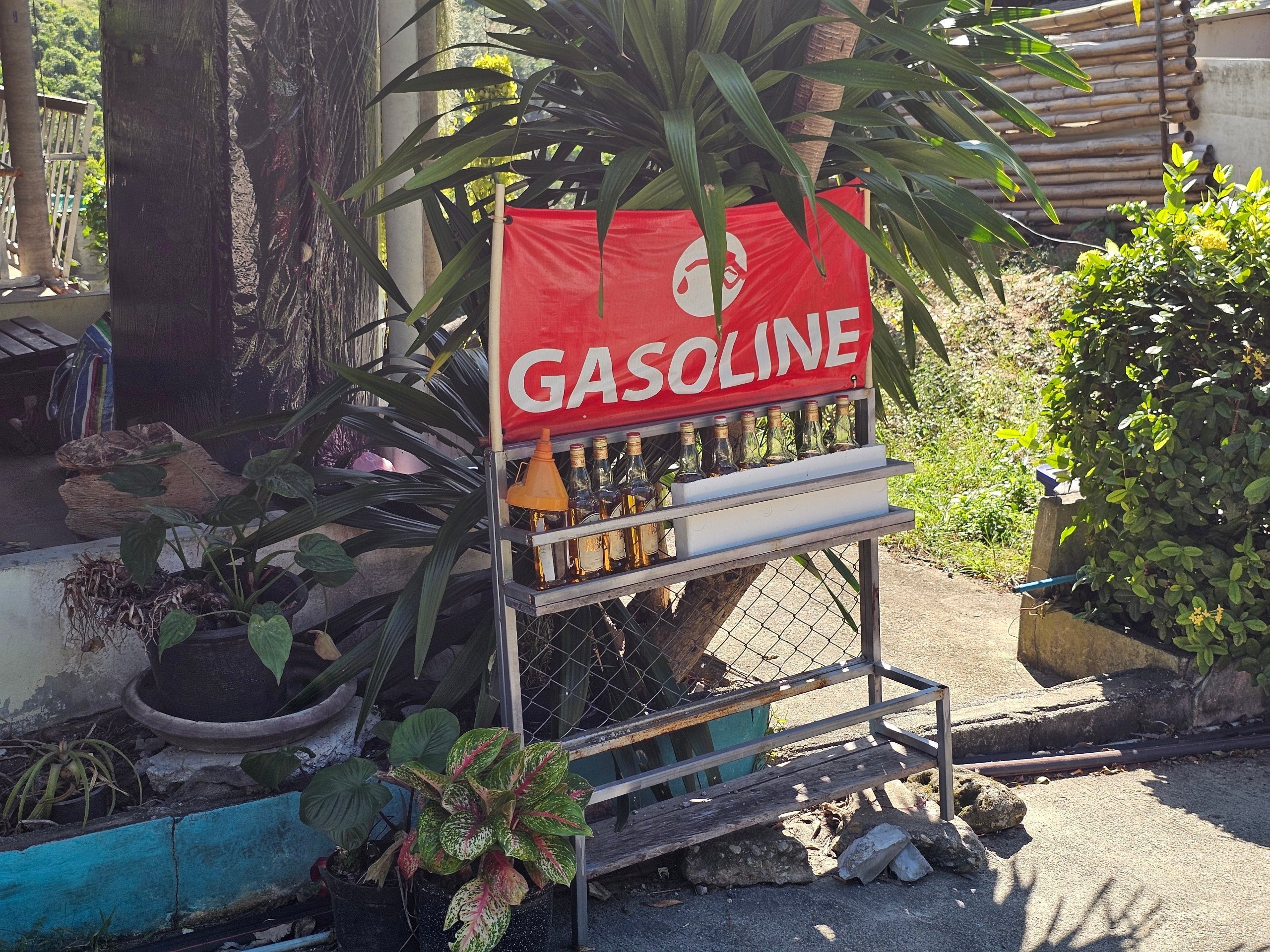 Be to, visoje saloje tiesiog kas kelis šimtus metrų galima sutikti improvizuotai parduodamą benziną stikliniuose litriniuose buteliuose.