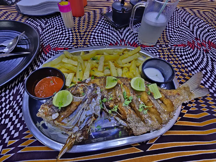 - valgiaraštyje su bulvytėmis / bulvytėmis, salotomis, galimai keptu bananu apie 7 000 tzs - 10 000 tzs