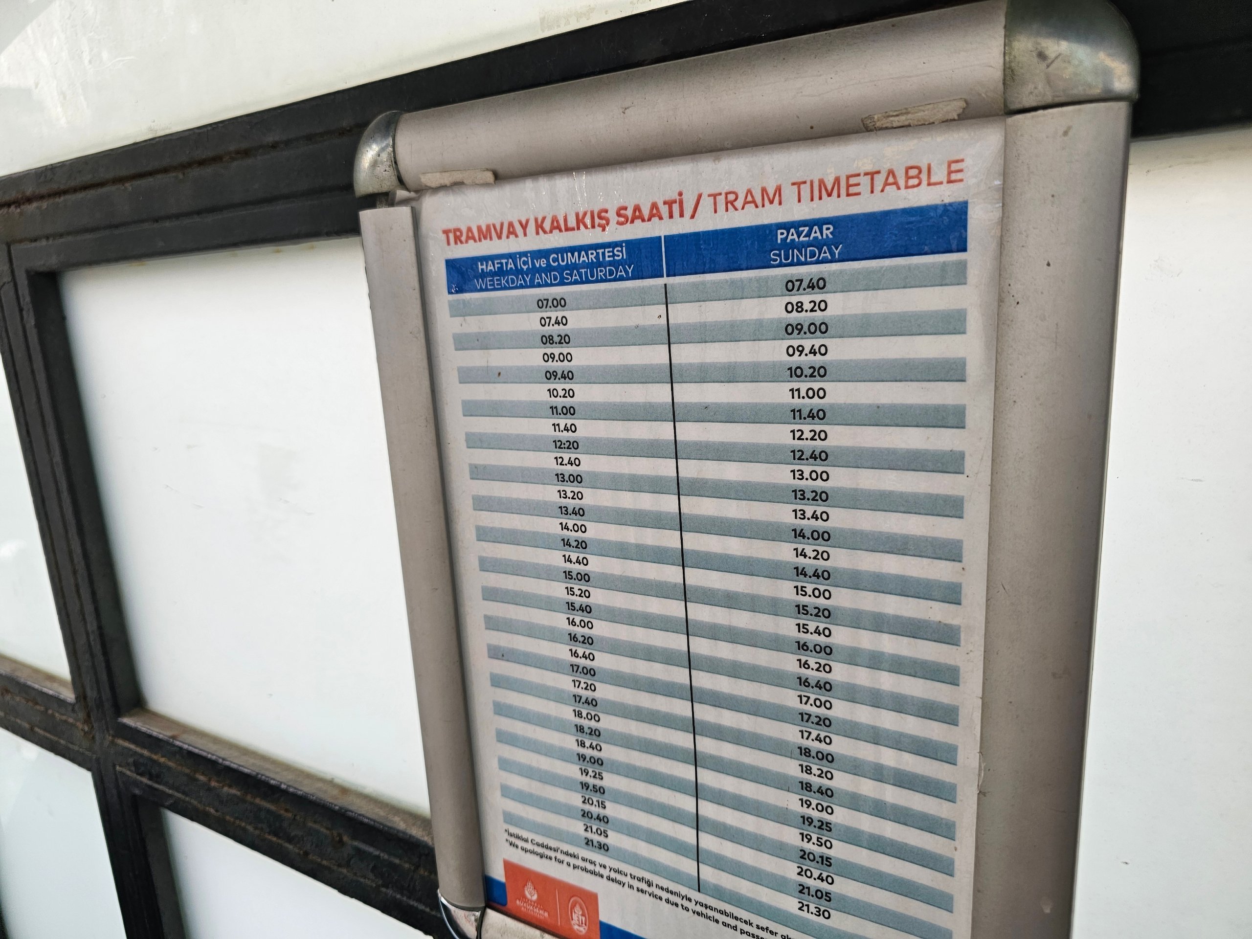 Traukiniai "Marmara" važiuoja panašiai kaip ir metro - intervalas yra apie 4-8 minutes ir važiuoja maždaug nuo 6:00 iki 23:30 val.