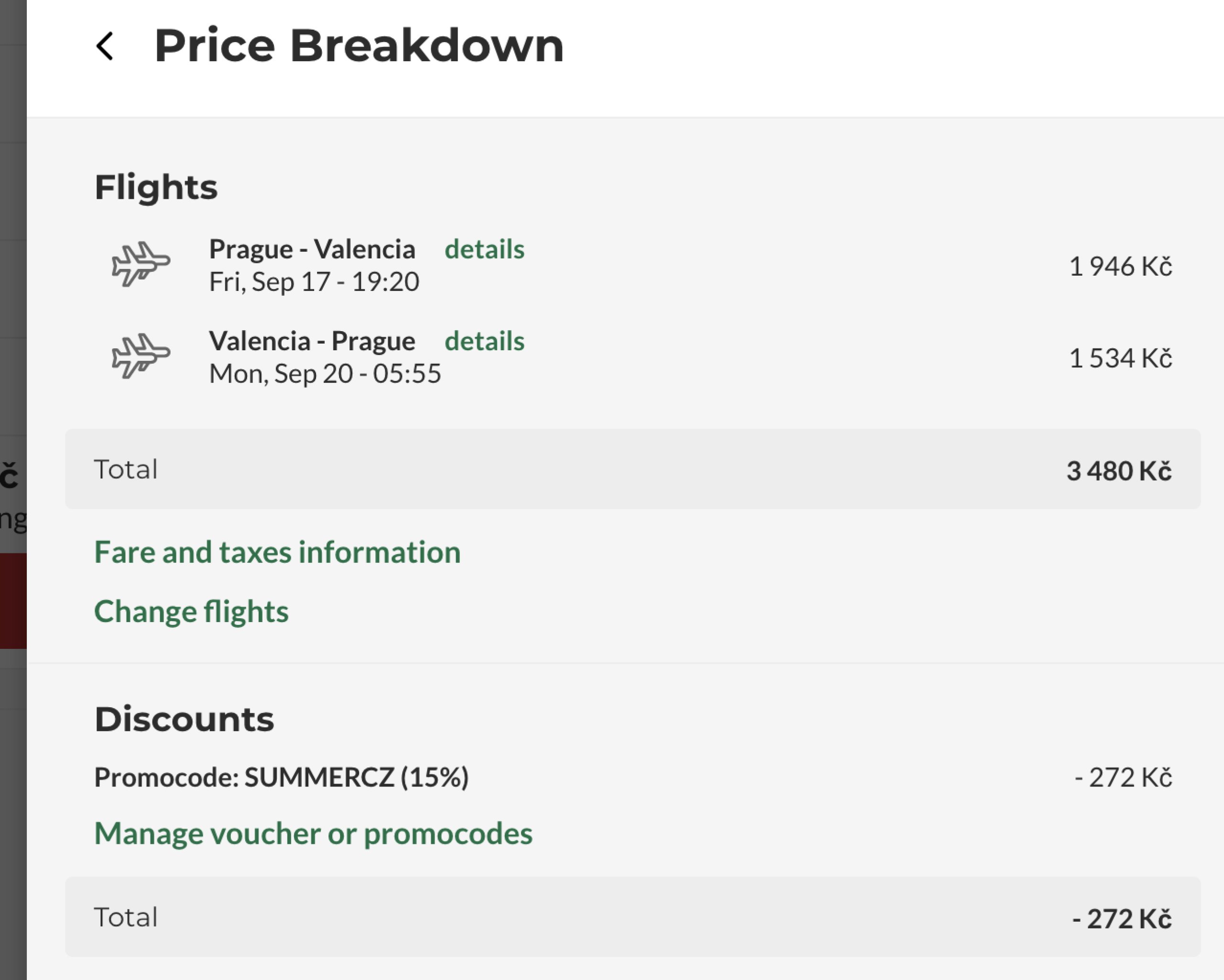 Po šia suma yra nuorodos, viena iš jų vadinasi "Price breakdown" ("Kainos suskirstymas").