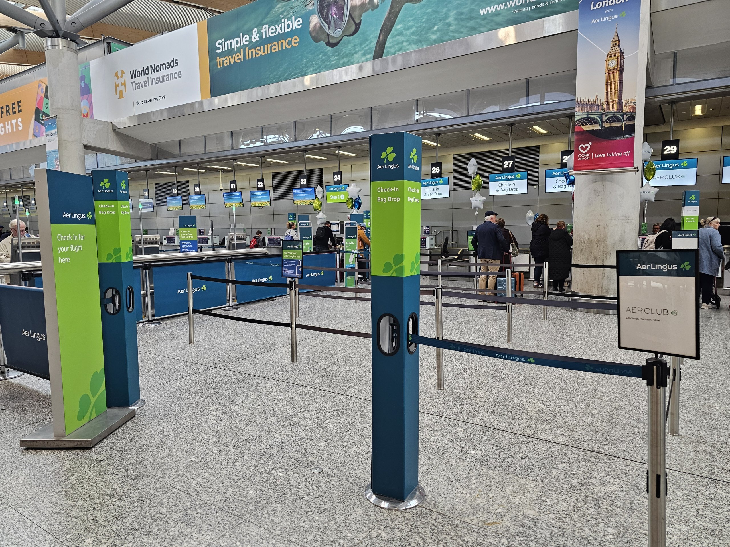 Registracija oro uoste visiems "Aer Lingus" keleiviams yra nemokama. Priklausomai nuo skrydžio tipo, registratūros dirba toliau nurodyta tvarka:
