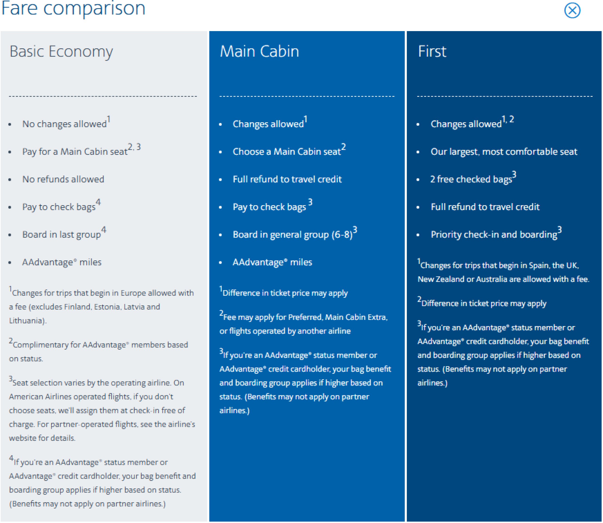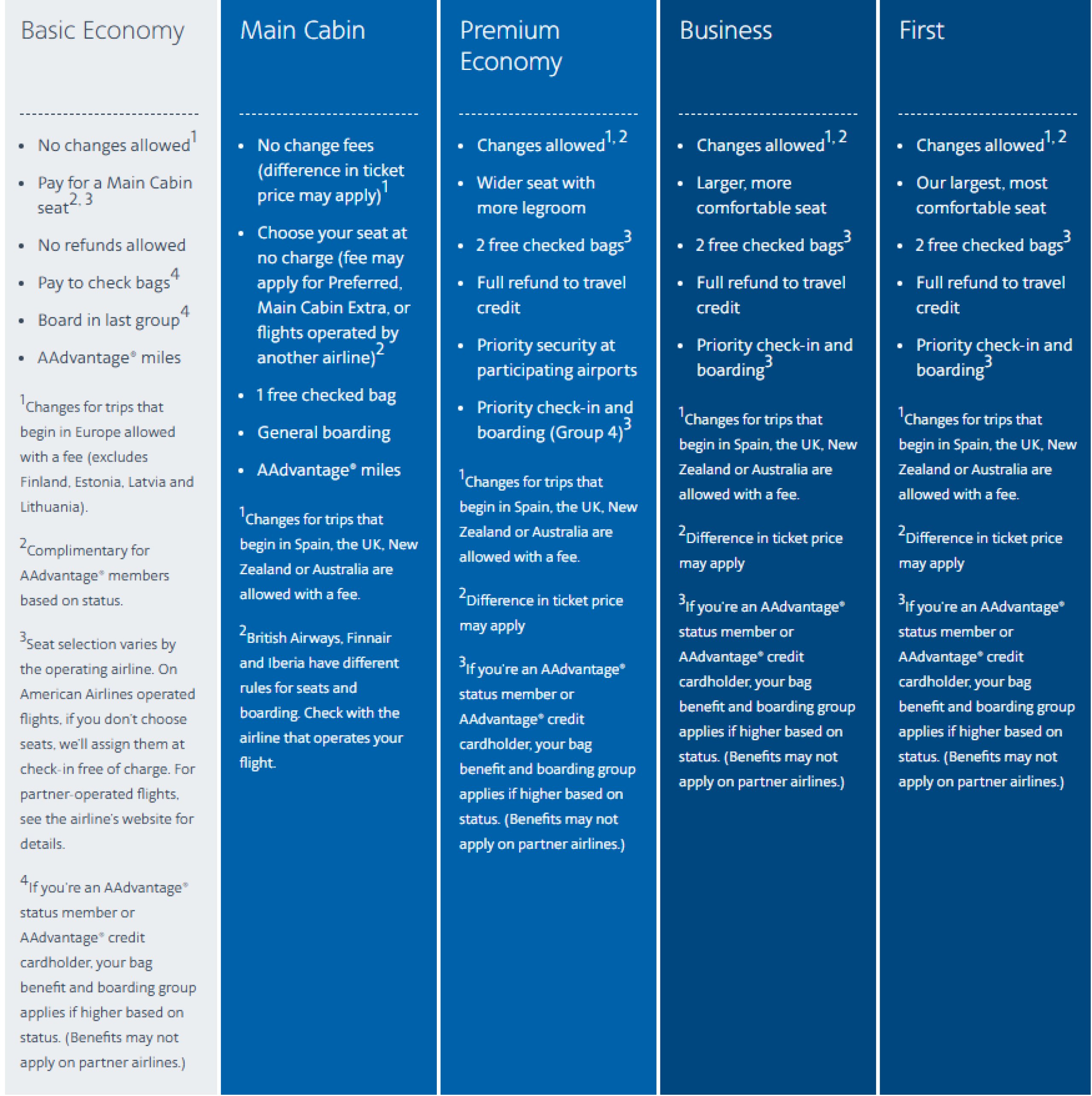 Skirtingos klasės dar skirstomos į skirtingas tarifų grupes, kurios skiriasi bagažo kiekiu, bilietų keitimo galimybėmis ir kitomis paslaugomis.