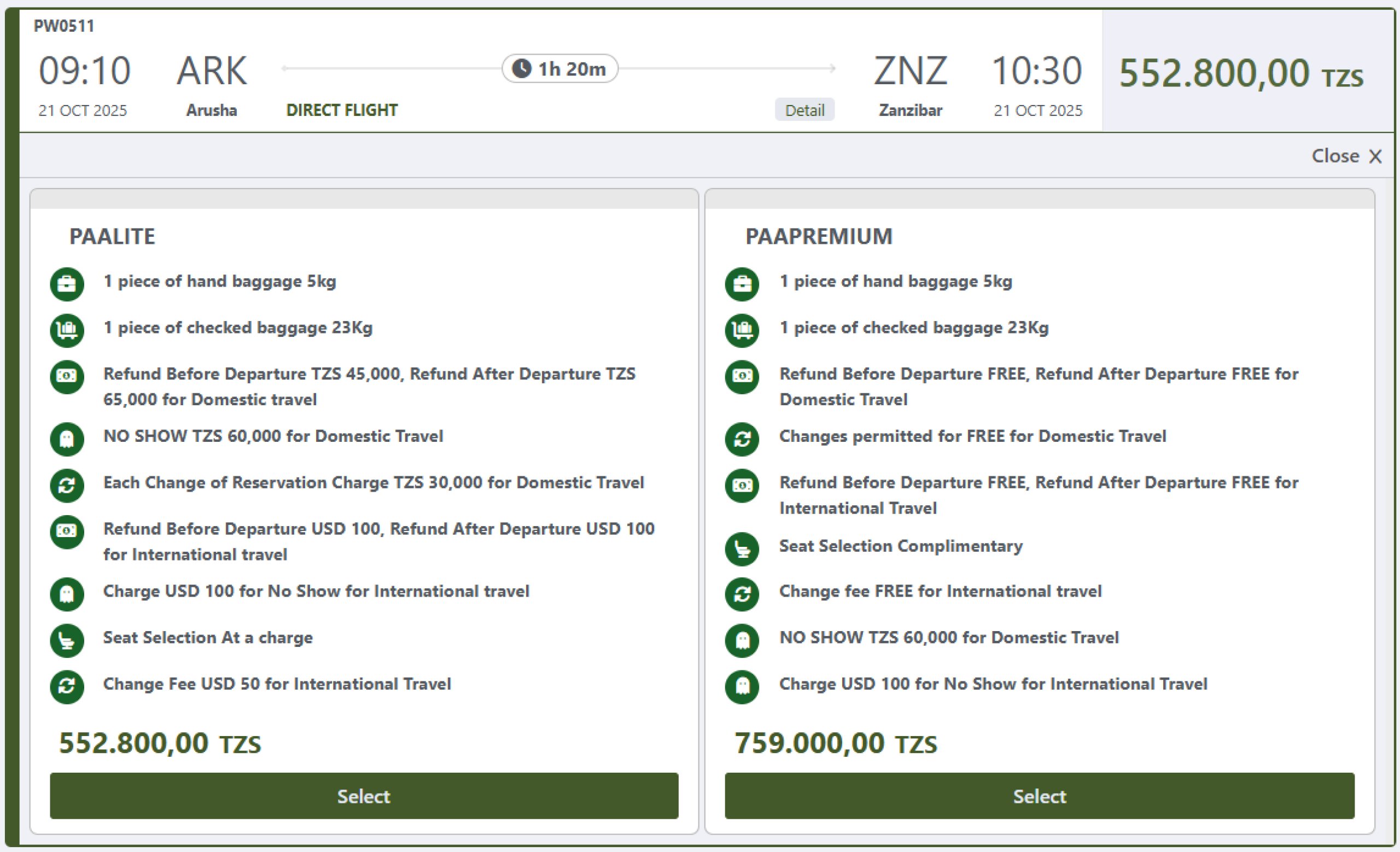 Kadangi daugeliu Tanzanijos maršrutų "Precision Air" konkuruoja su kitomis oro transporto bendrovėmis, verta palyginti kainas naudojantis skrydžių palyginimo priemonėmis.