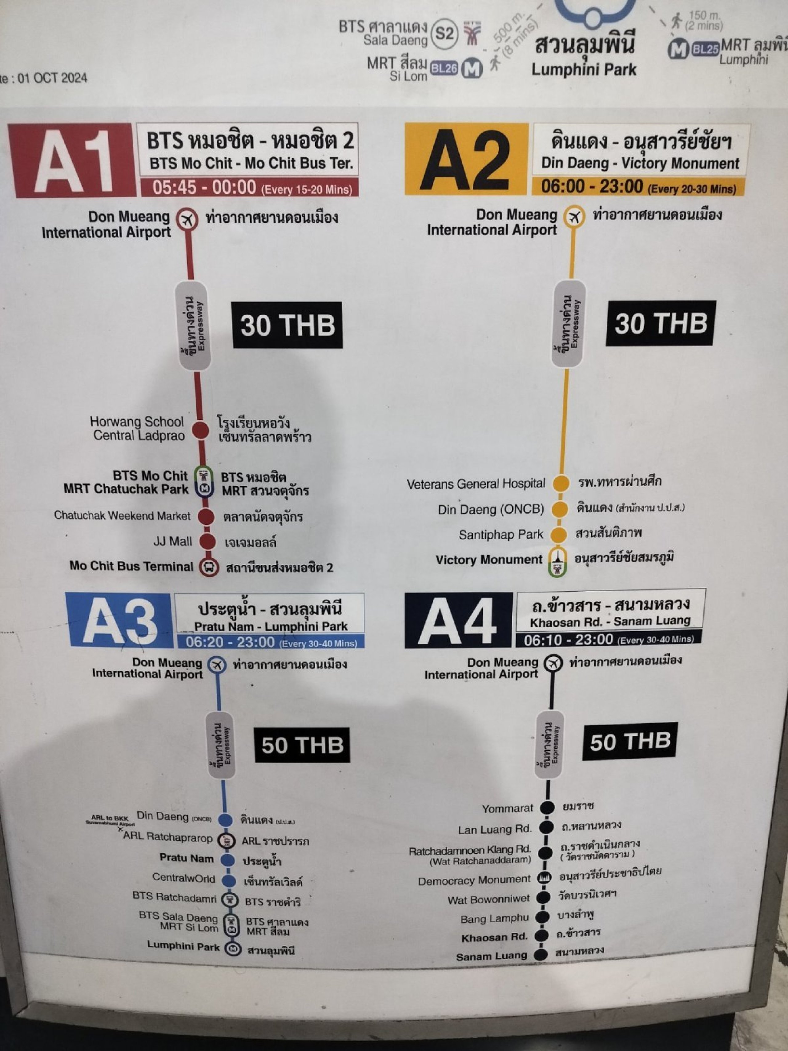 Važiuoja iš oro uosto iki Mo Chit (šviesiai žalia BTS linija) ir Chatuchak Park (mėlyna MRT linija) metro stočių, kurios yra visai šalia viena kitos.