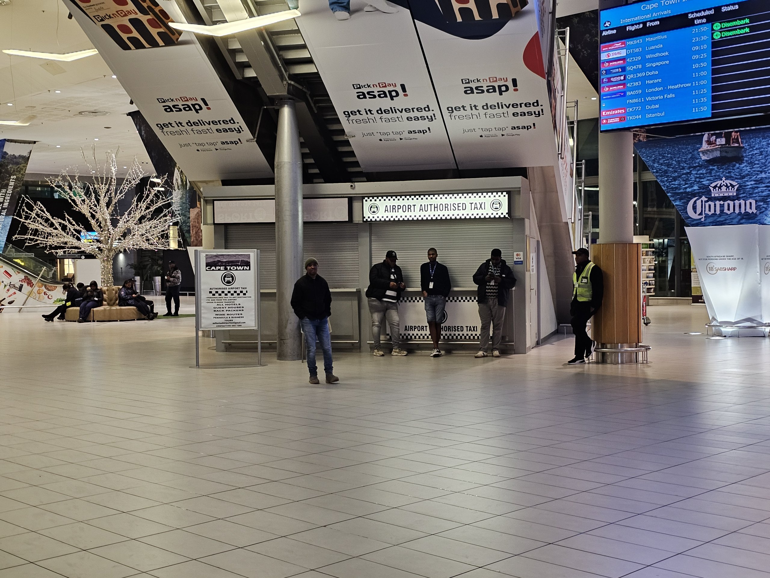 Idealiu atveju automobilį turėtumėte užsisakyti išėję iš oro uosto salės. Laukimo laikas paprastai trunka 5-10 minučių. Jei nenorite gaišti laiko pirkdami vietinę sim kortelę atvykę, prieš skrisdami į Pietų Afriką įsigykite elektroninę sim kortelę, nesirūpindami airalo.com.
