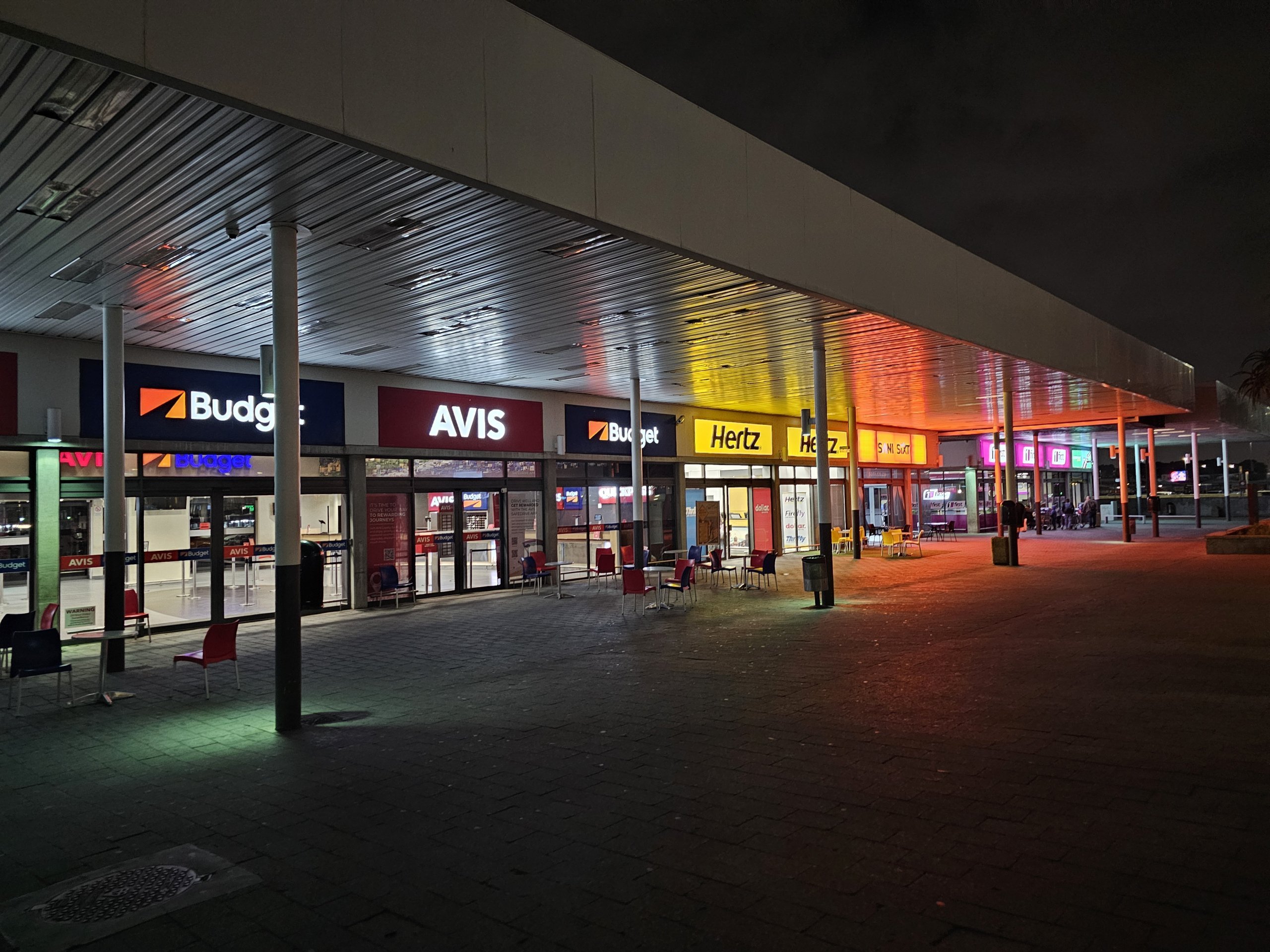 Visi automobilių nuomos punktai yra maždaug už 3-5 minučių kelio pėsčiomis nuo terminalo gerai pažymėtu pėsčiųjų taku.