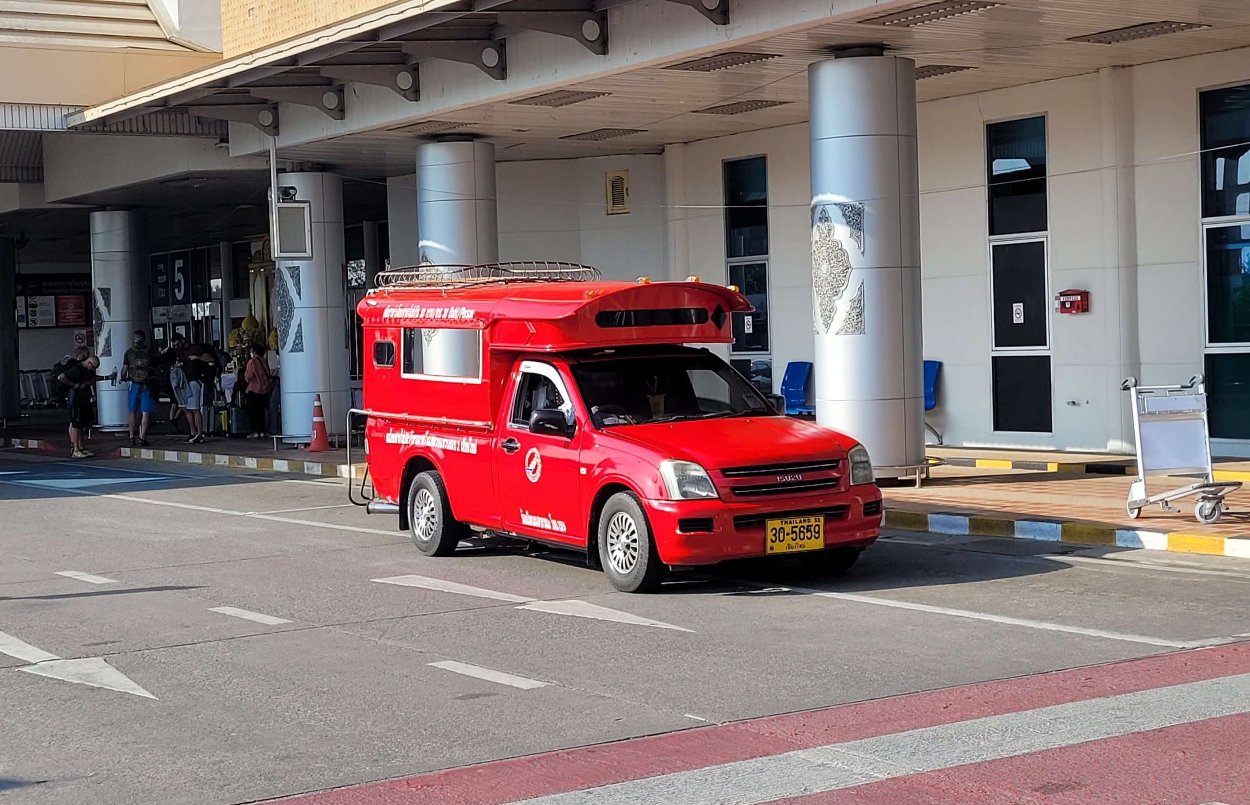 Važiuodami į oro uostą pagausite songhtaews, ypač pagrindinėse gatvėse.