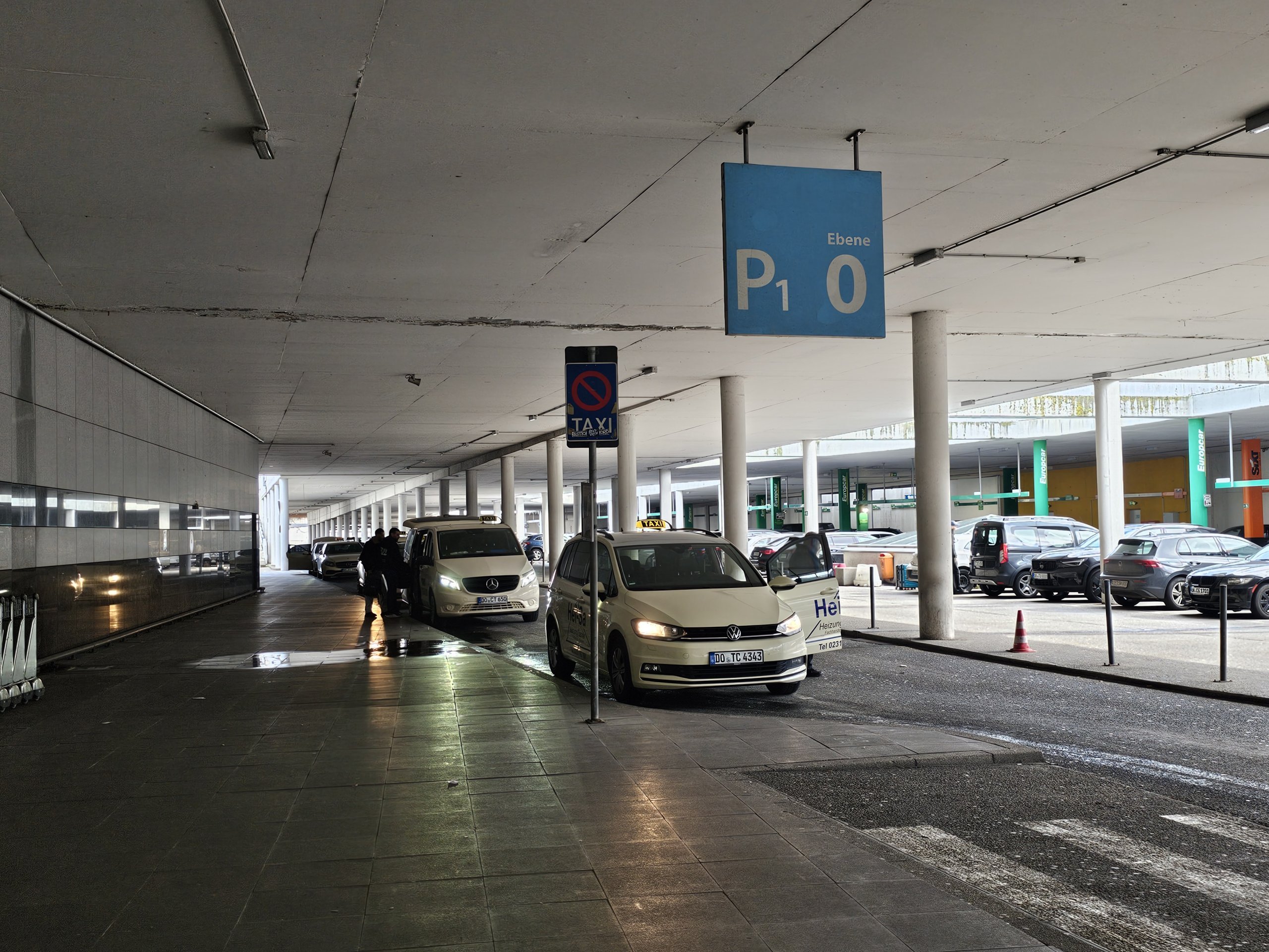 Taksi stovėjimo aikštelė yra rūsyje prie pat atvykimo salės.