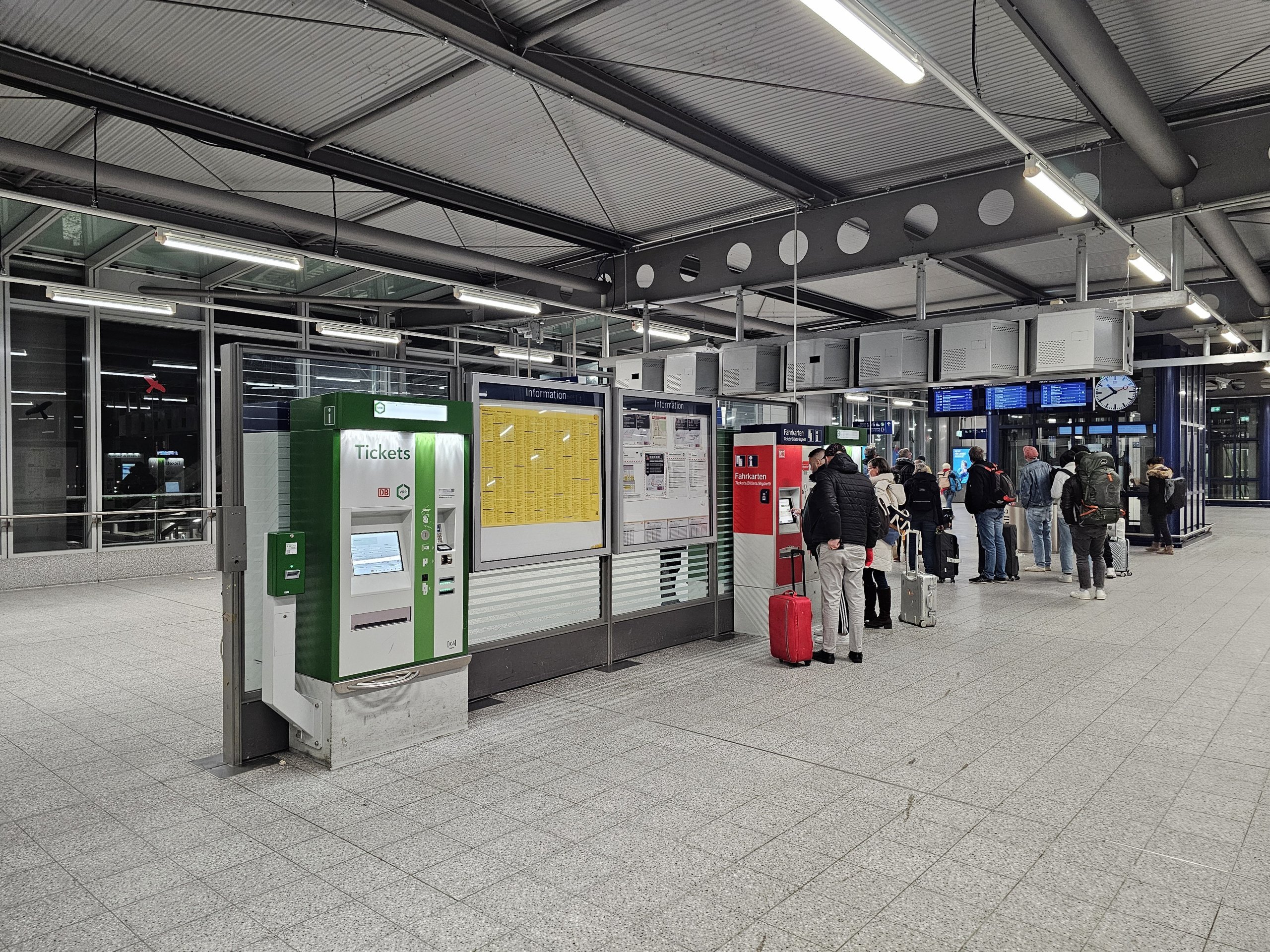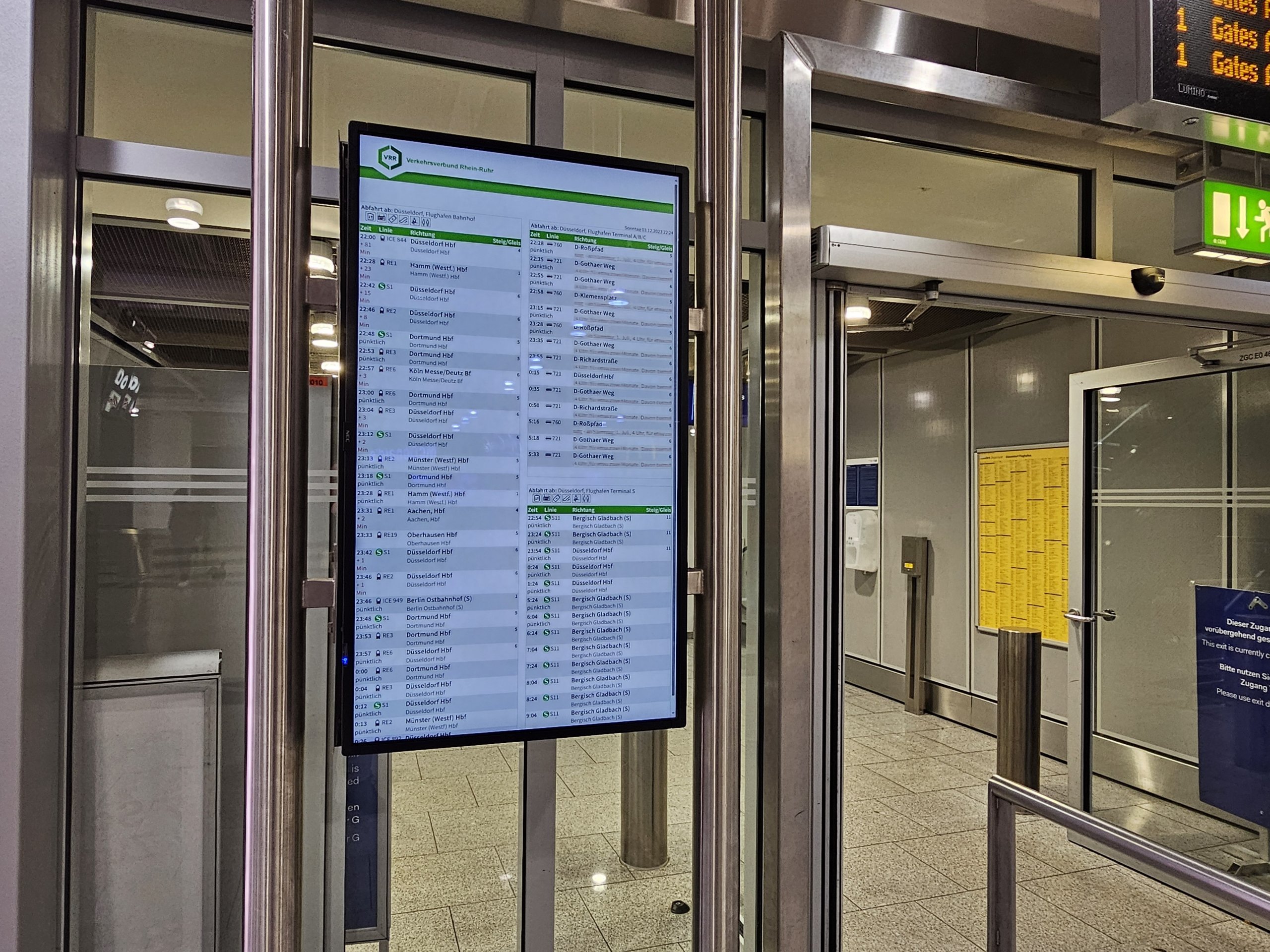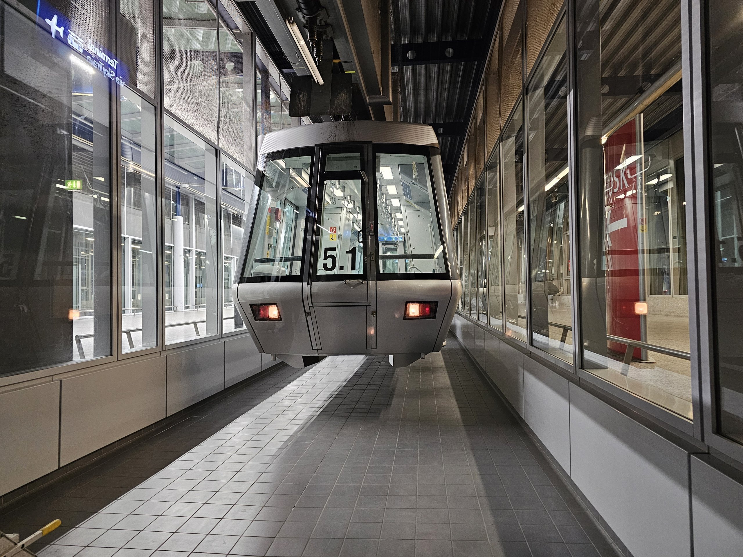 Prieš išvykdami iš oro uosto terminalo, interaktyvioje išvykimo lentoje galite palyginti dabartinius visų maršrutų išvykimus ir palyginti, ar verta važiuoti automatiniu traukiniu iki geležinkelio stoties, ar verčiau važiuoti S-Bahn S11 traukiniu tiesiai iš terminalo.