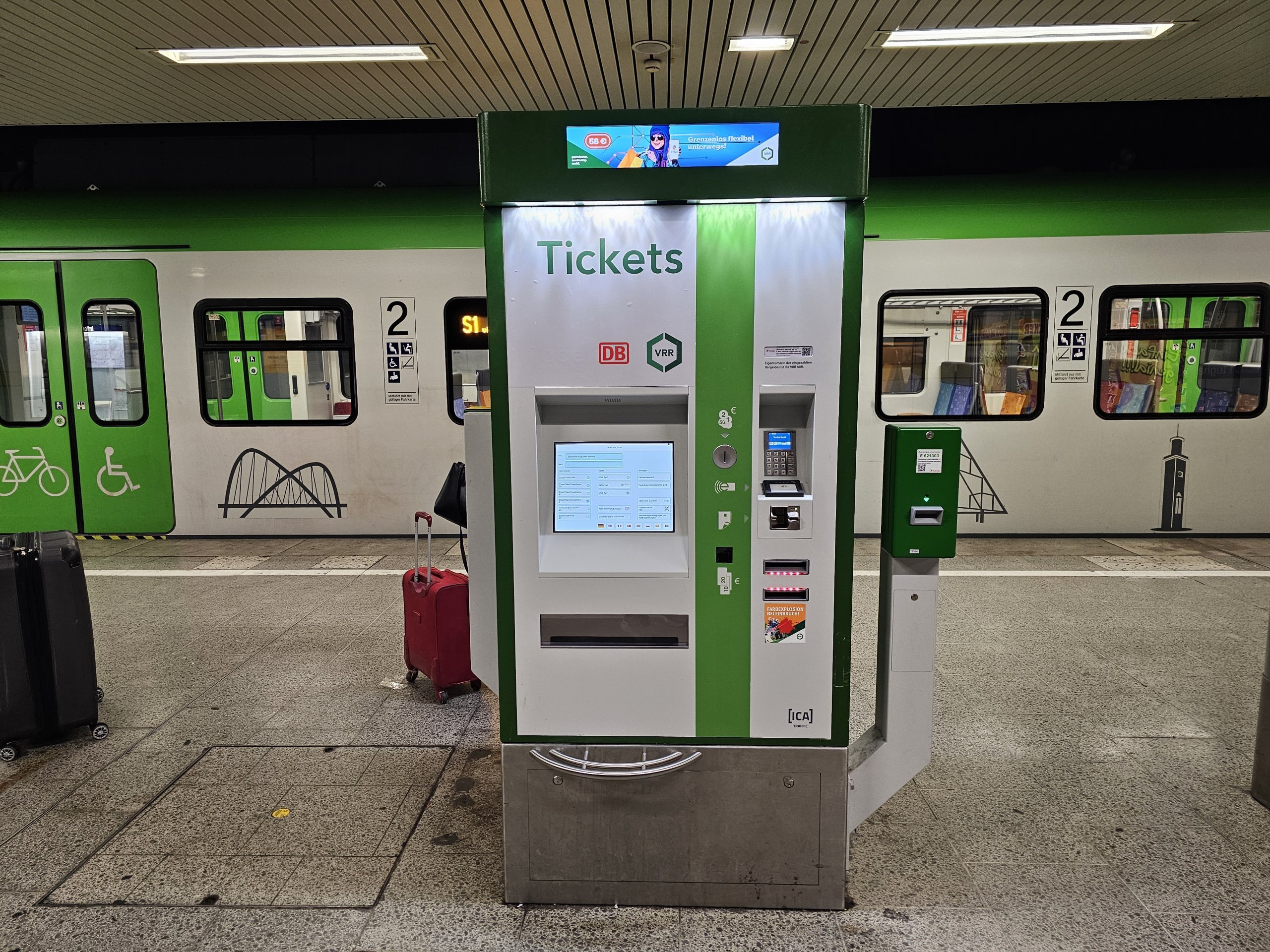 Bilietus galima įsigyti visose stotyse esančiuose bilietų automatuose arba mobiliojoje " Rheinbahn" programėlėje.