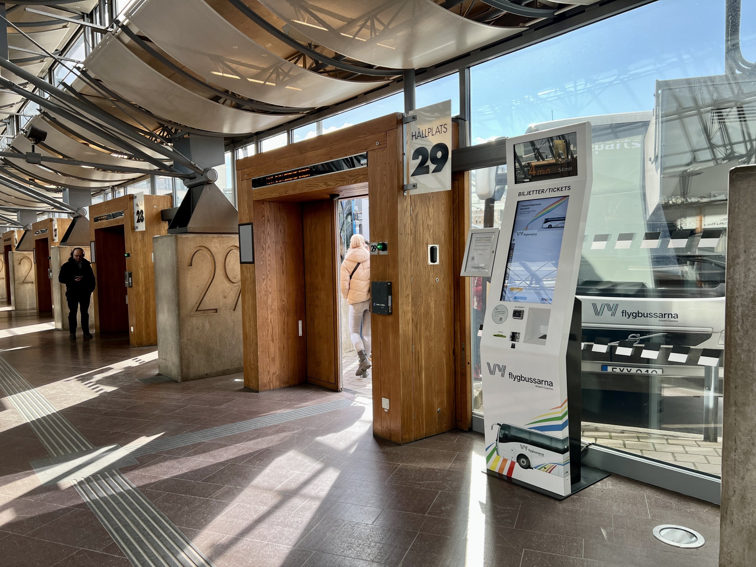 Autobusų stotelės yra prie pat oro uosto terminalo ir miesto centre, Nils Ericson stotyje.