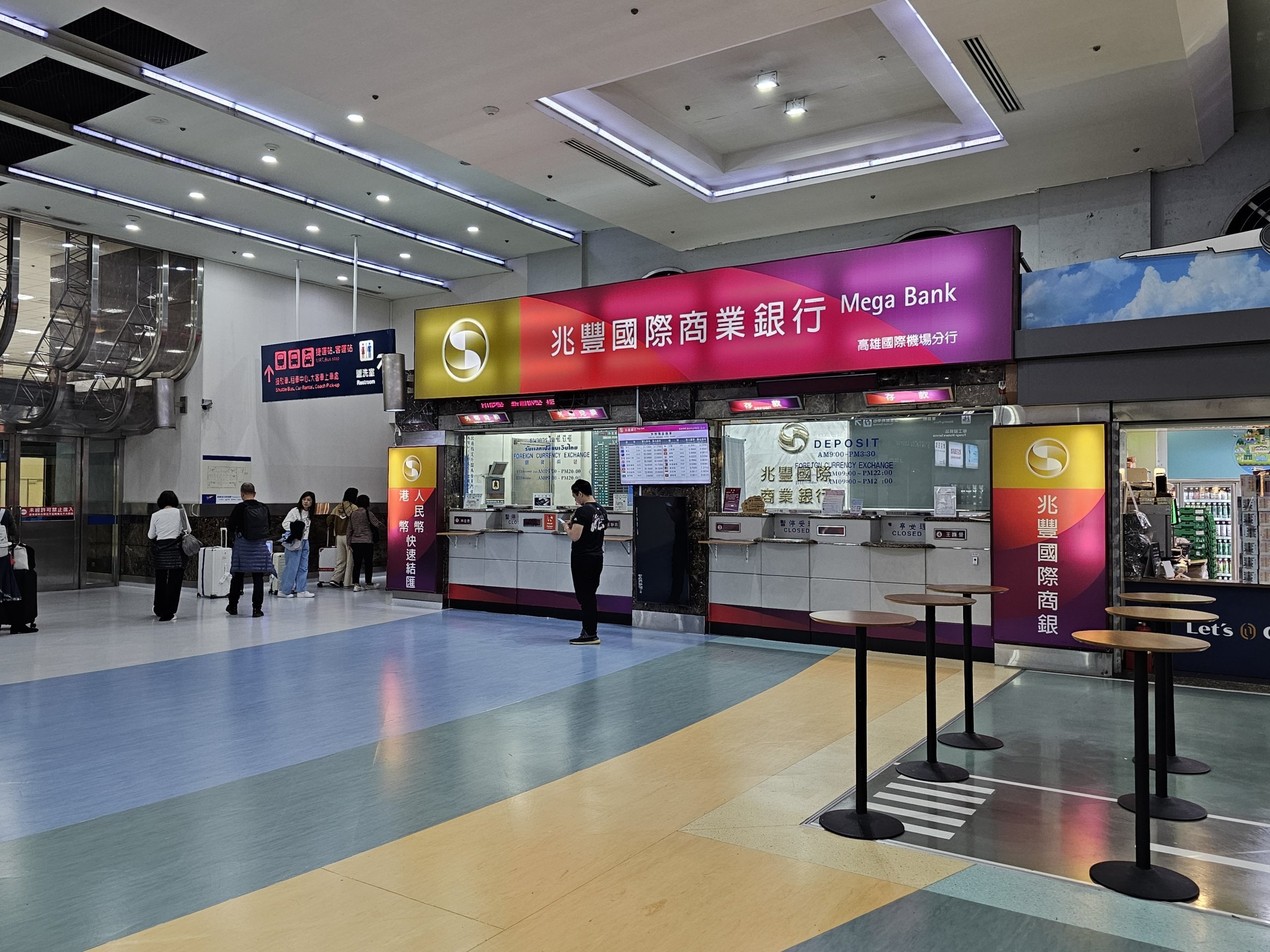 Viešojoje oro uosto zonoje yra keli Taivano bankų skyriai, kuriuose geru kursu galite išsikeisti JAV dolerių, Japonijos jenų, Kinijos juanių, Australijos dolerių arba eurų.