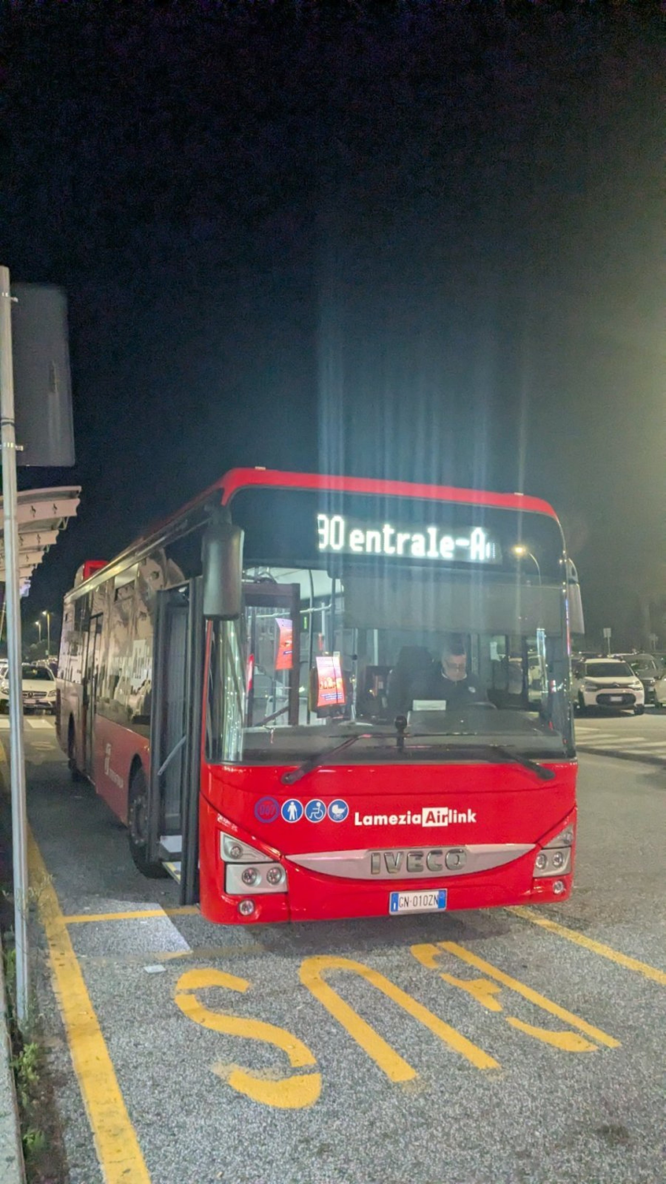 Nors paskutinis 90 linijos maršrutas iš oro uosto į traukinių stotį išvyksta tik 23:15, paskutinis autobusas iš stoties į Lamezia Terme centrą išvyksta apie 22:20. Po šio laiko į centrą galite vykti tik taksi.