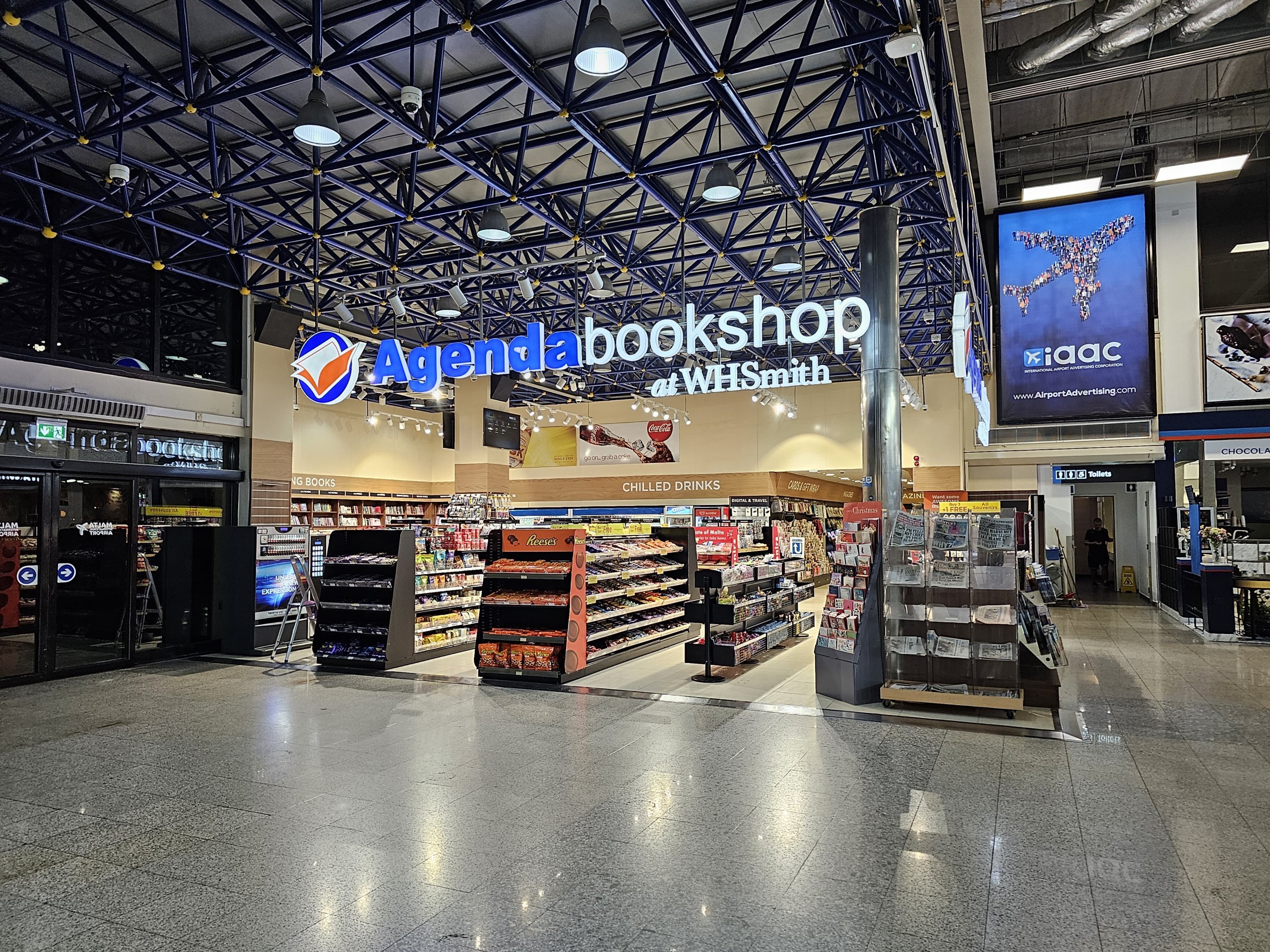 Viešojoje oro uosto dalyje atvykimo salėje yra "WHSmith" spaudos kioskas (užsidaro 21:00 val.), o išvykimo salėje - "Agenda Booshop" spaudos kioskas, veikiantis visą parą. Abiejose vietose galite įsigyti ne tik spaudinių, bet ir gėrimų bei saldumynų.