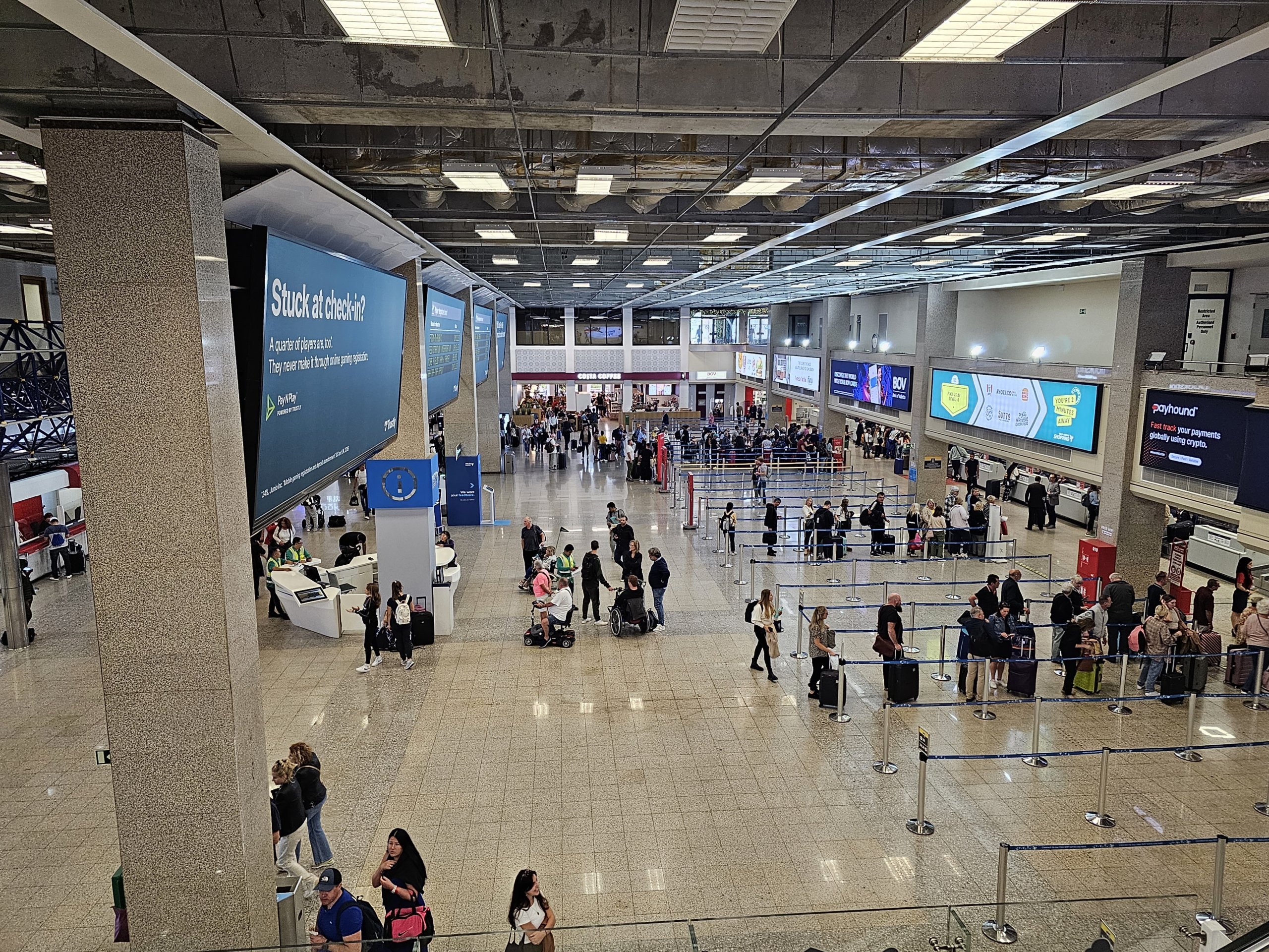 Terminalas neperkrautas, tačiau erdvė po saugumo patikros yra ankšta ir nepritaikyta srautui.