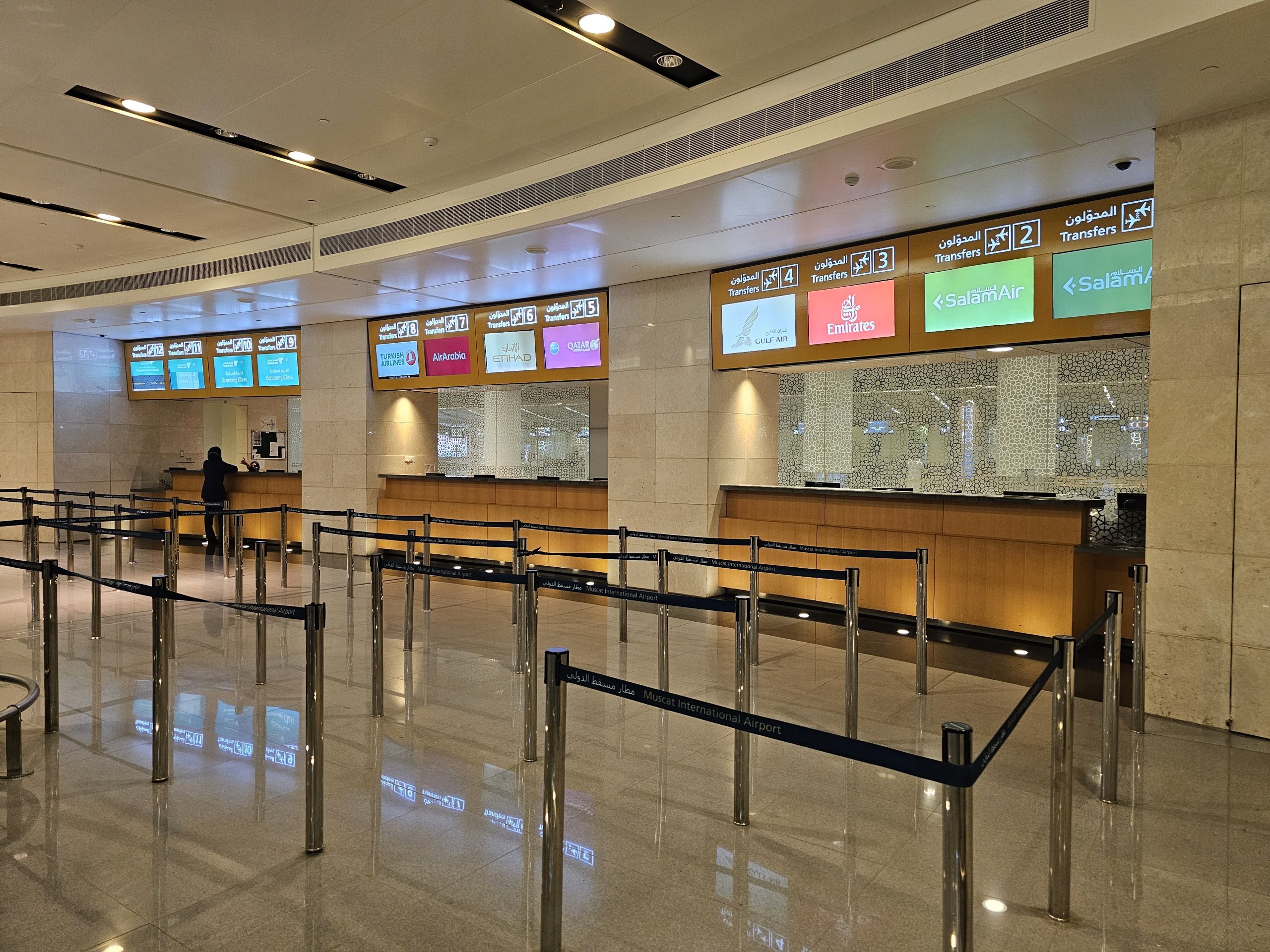 Persėdimas Maskate yra labai paprastas ir greitas. Atvykę sekite užrašus "Pervežimai" ir nueikite prie stalų, kur galėsite išspręsti visus klausimus, susijusius su jungiamuoju skrydžiu.