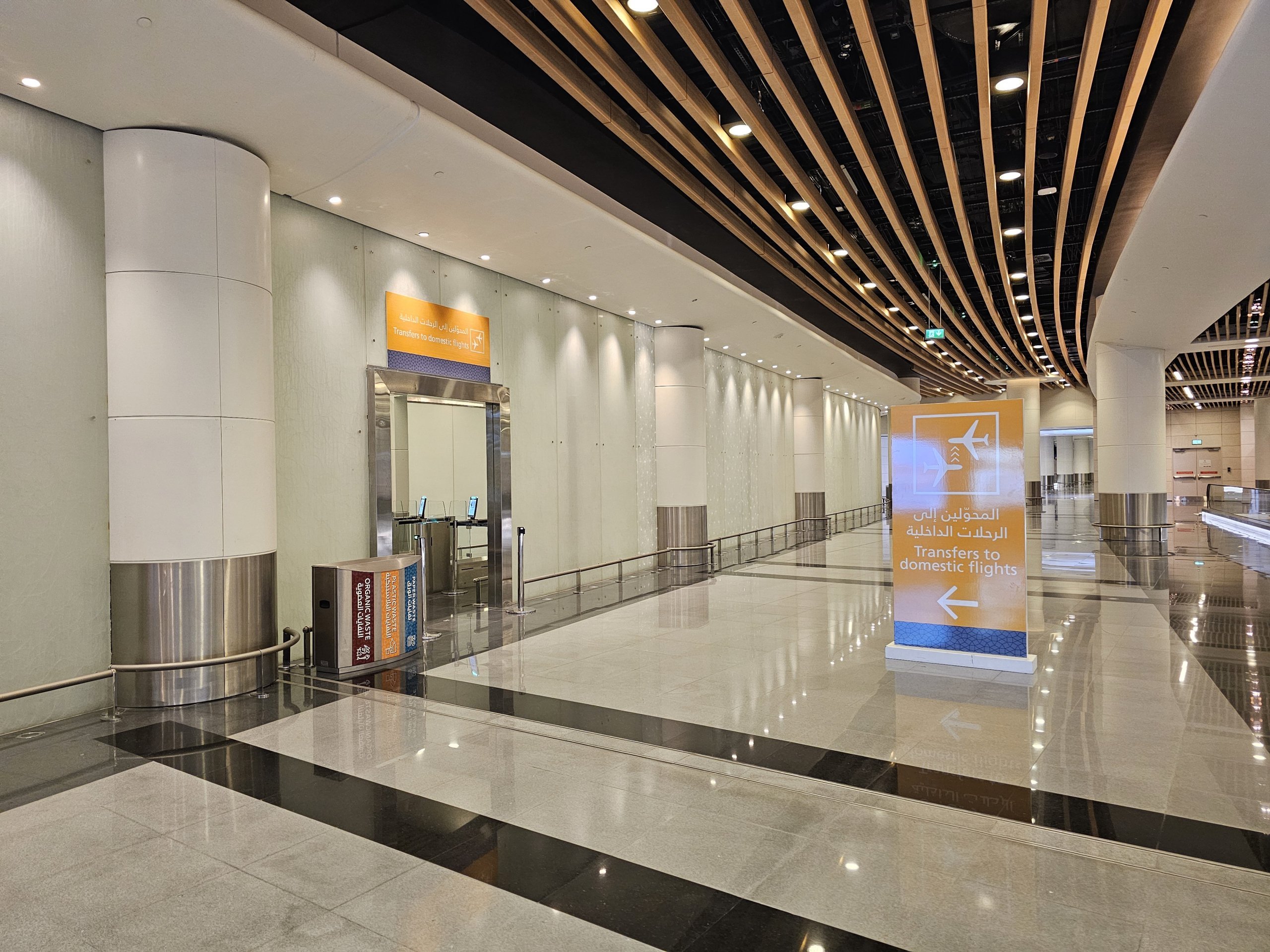 Jei po atvykimo tarptautiniu skrydžiu Omano teritorijoje toliau skrendate vidaus reisu, jums nereikia palikti tranzito zonos ar atsiimti bagažo.