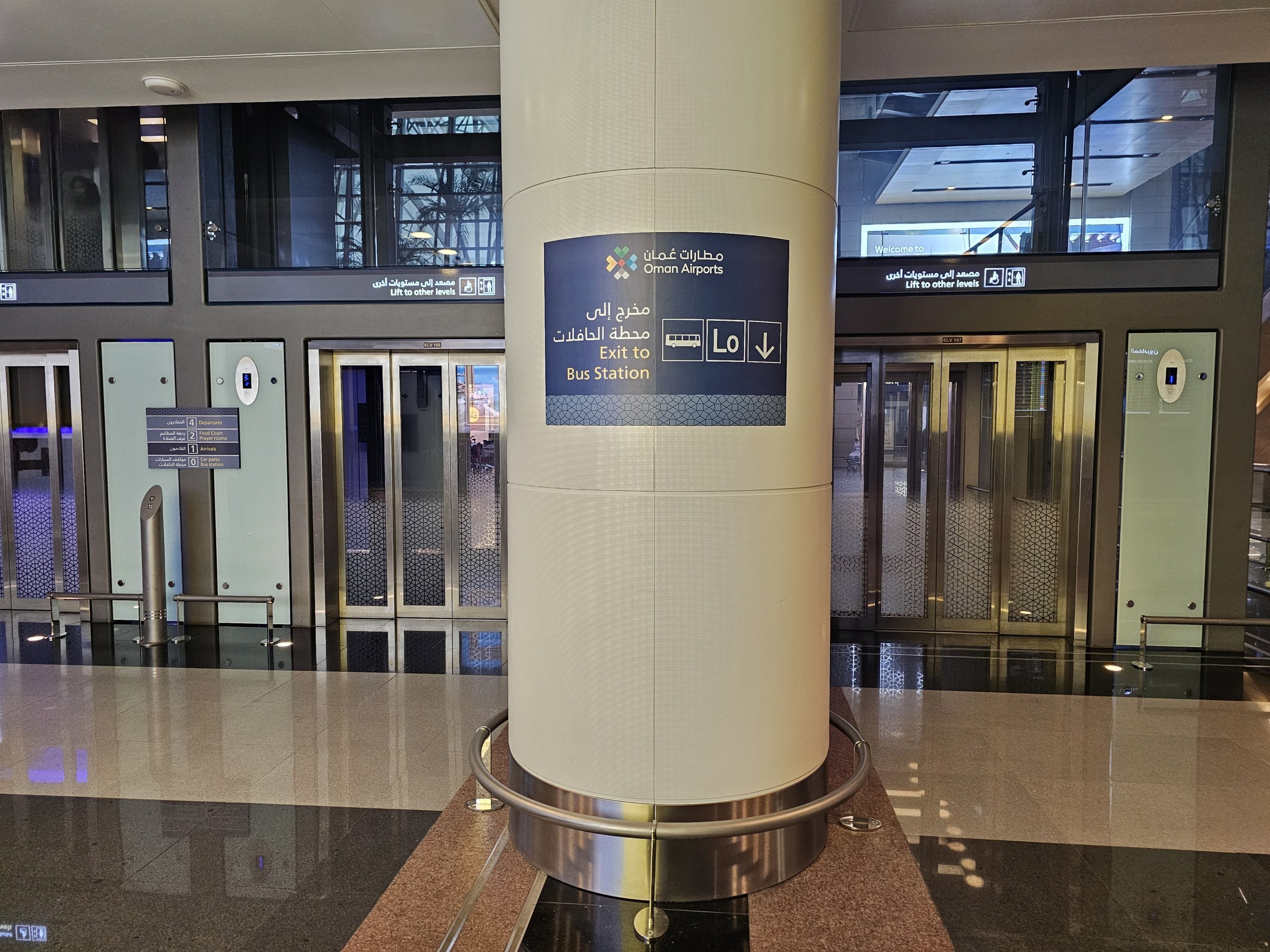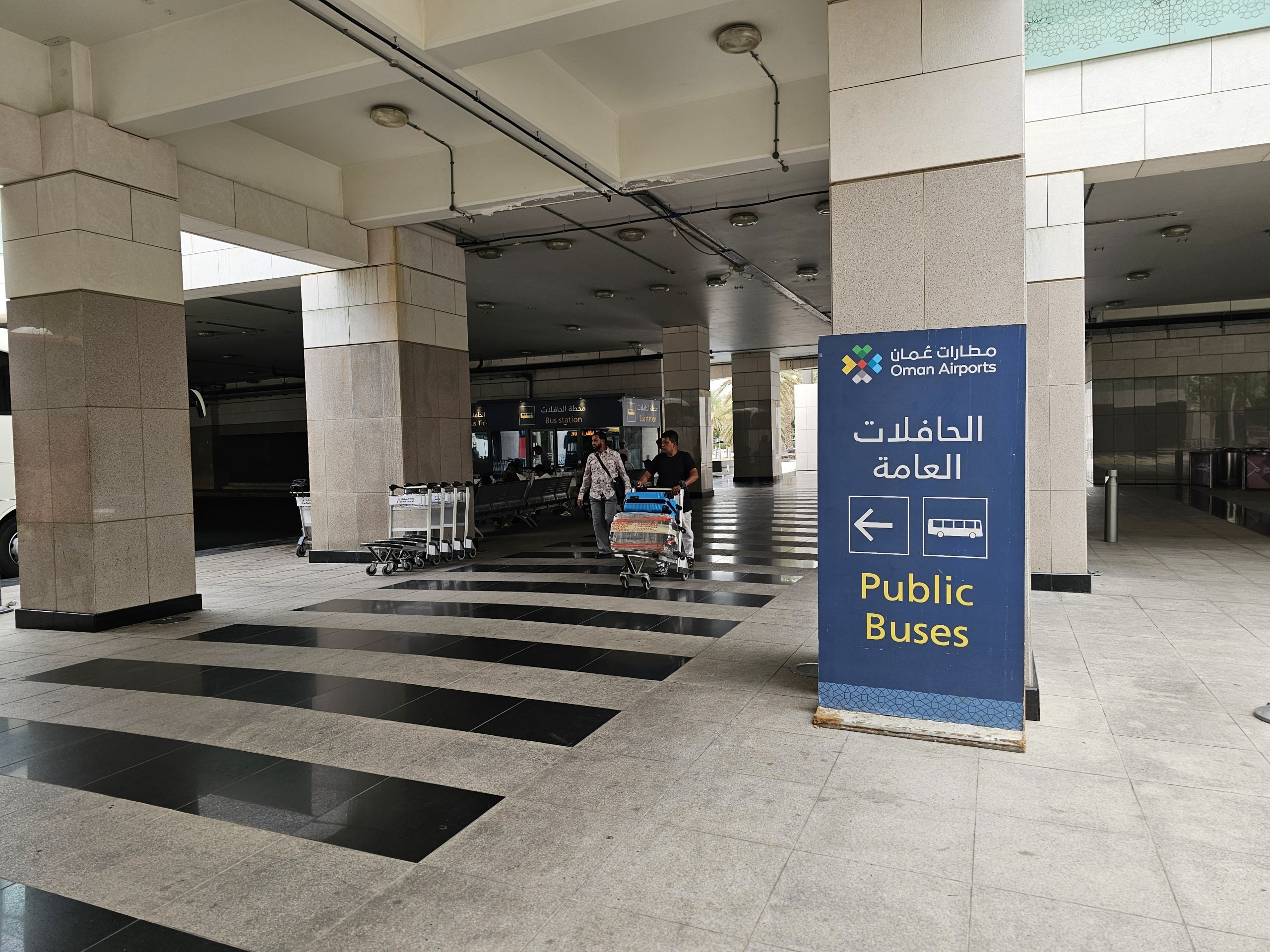 Iš Maskato miesto centro ir pagrindinės autobusų stoties į oro uostą važiuoja dvi "Mwasalat" viešojo transporto linijos: mwasalat.om/city.