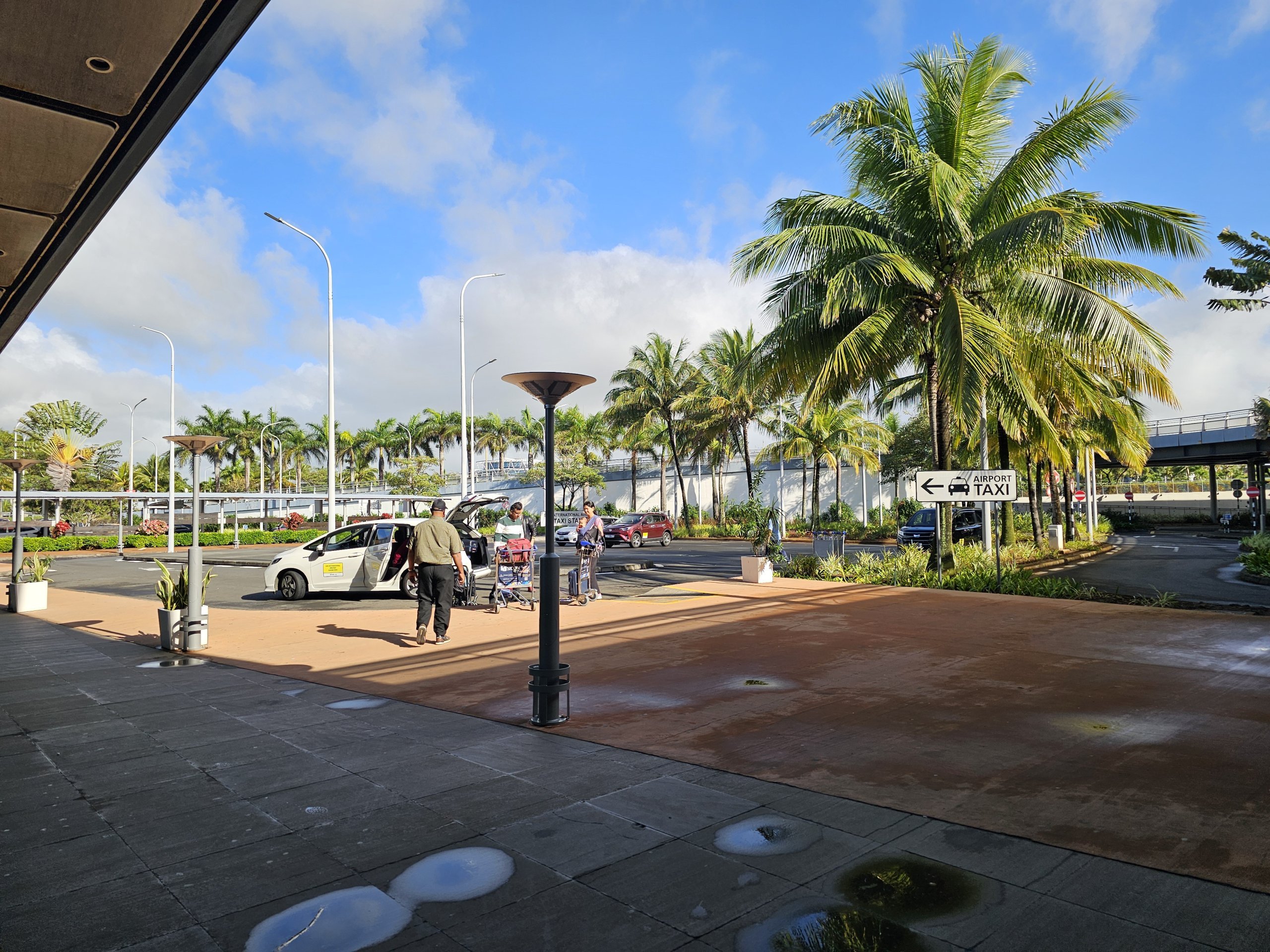Kairėje atvykimo salės pusėje yra oficiali taksi stovėjimo vieta. Deja, Mauricijuje nėra taksometrų, o kainos nustatomos pagal paklausą. Keliaudami iš oro uosto greičiausiai negalėsite derėtis dėl mažesnės kainos nei ta, kurią jums pasiūlys taksi vairuotojas.