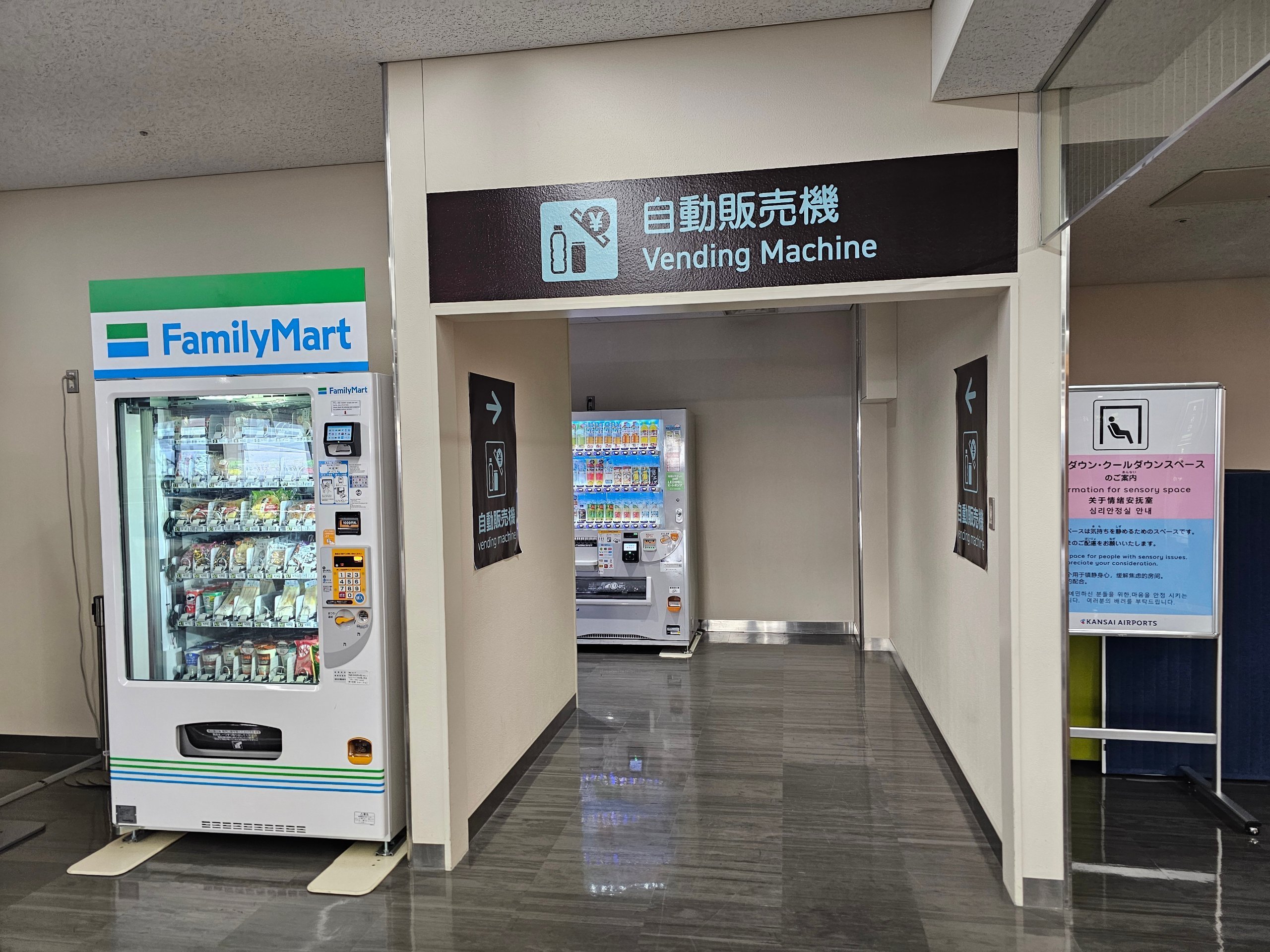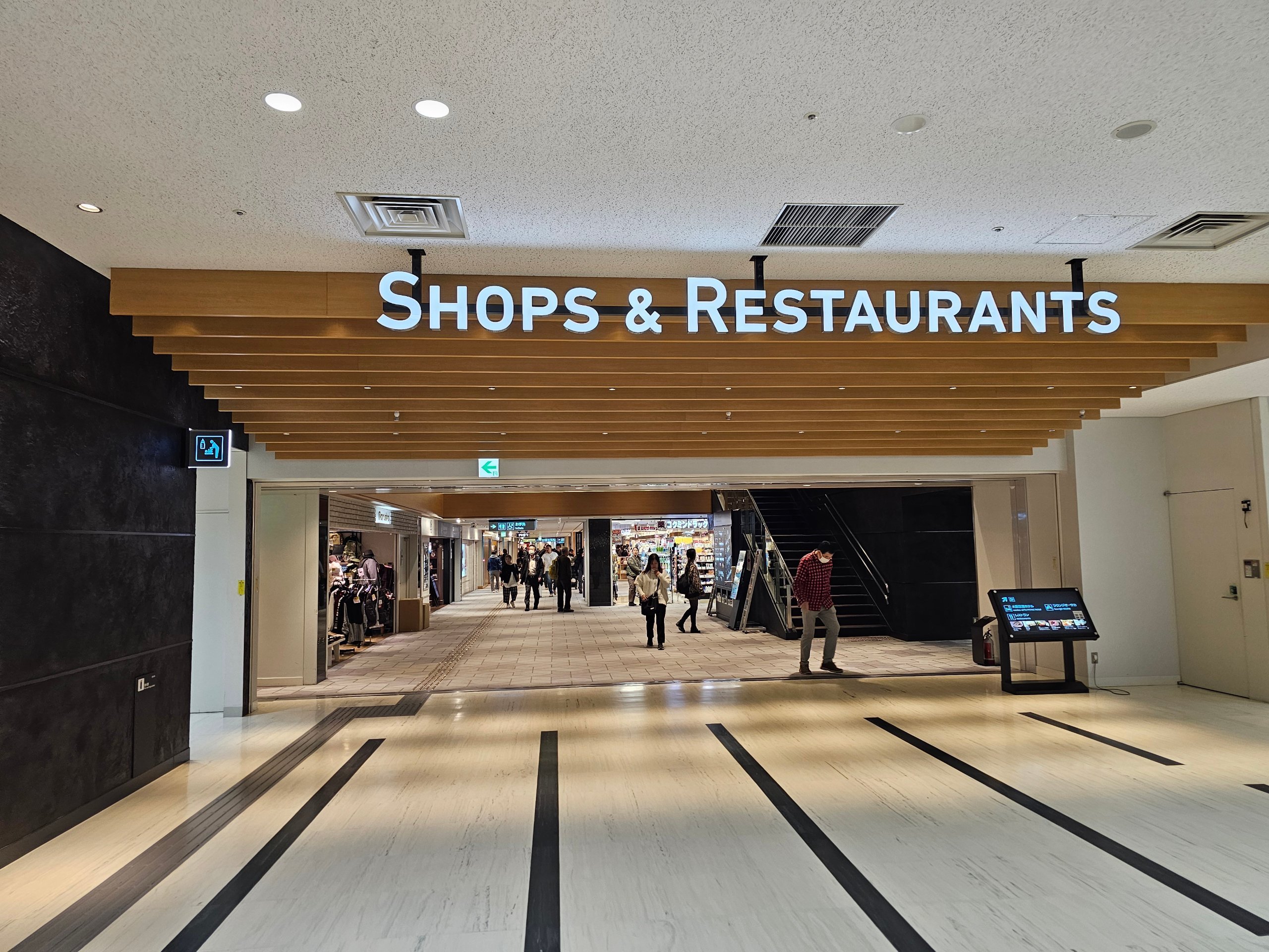 Centriniame atriume tarp terminalų, esančiame 1 aukšte (viešoji erdvė), galite nusipirkti greito maisto išsinešimui " Lawson" mini turgelyje (6.00-23.00 val.).