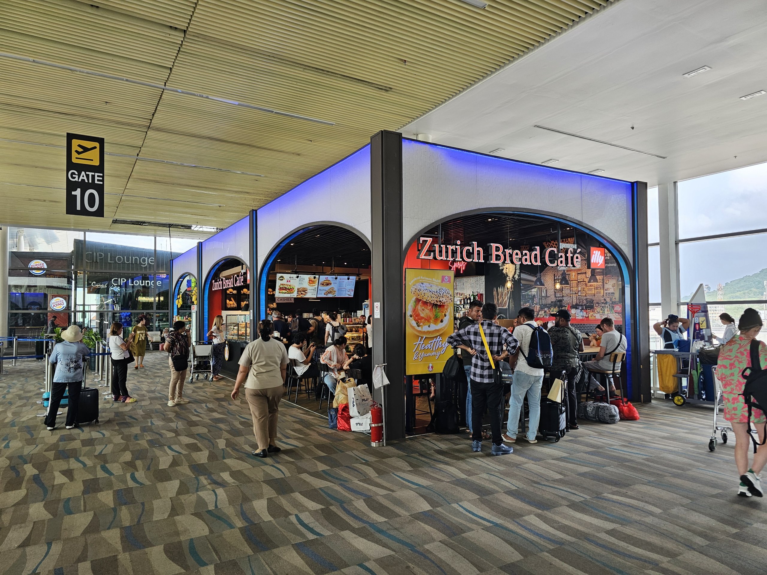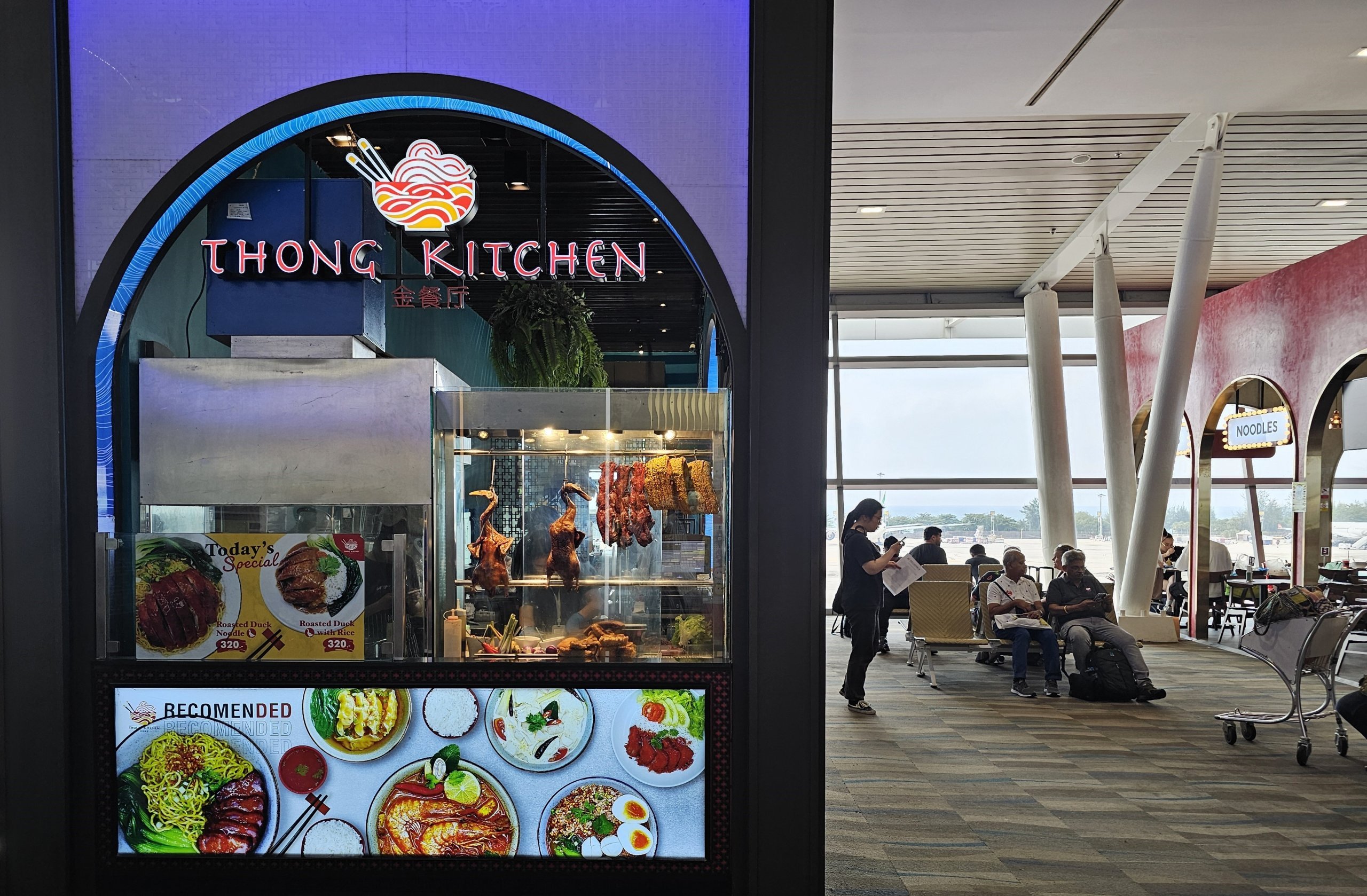 Pastate rasite daug vietinių restoranų ir nebrangių užkandinių. Po saugumo patikros galima apsilankyti svetainėje food court, kurioje siūlomi Azijos virtuvės patiekalai ir kavinės.
