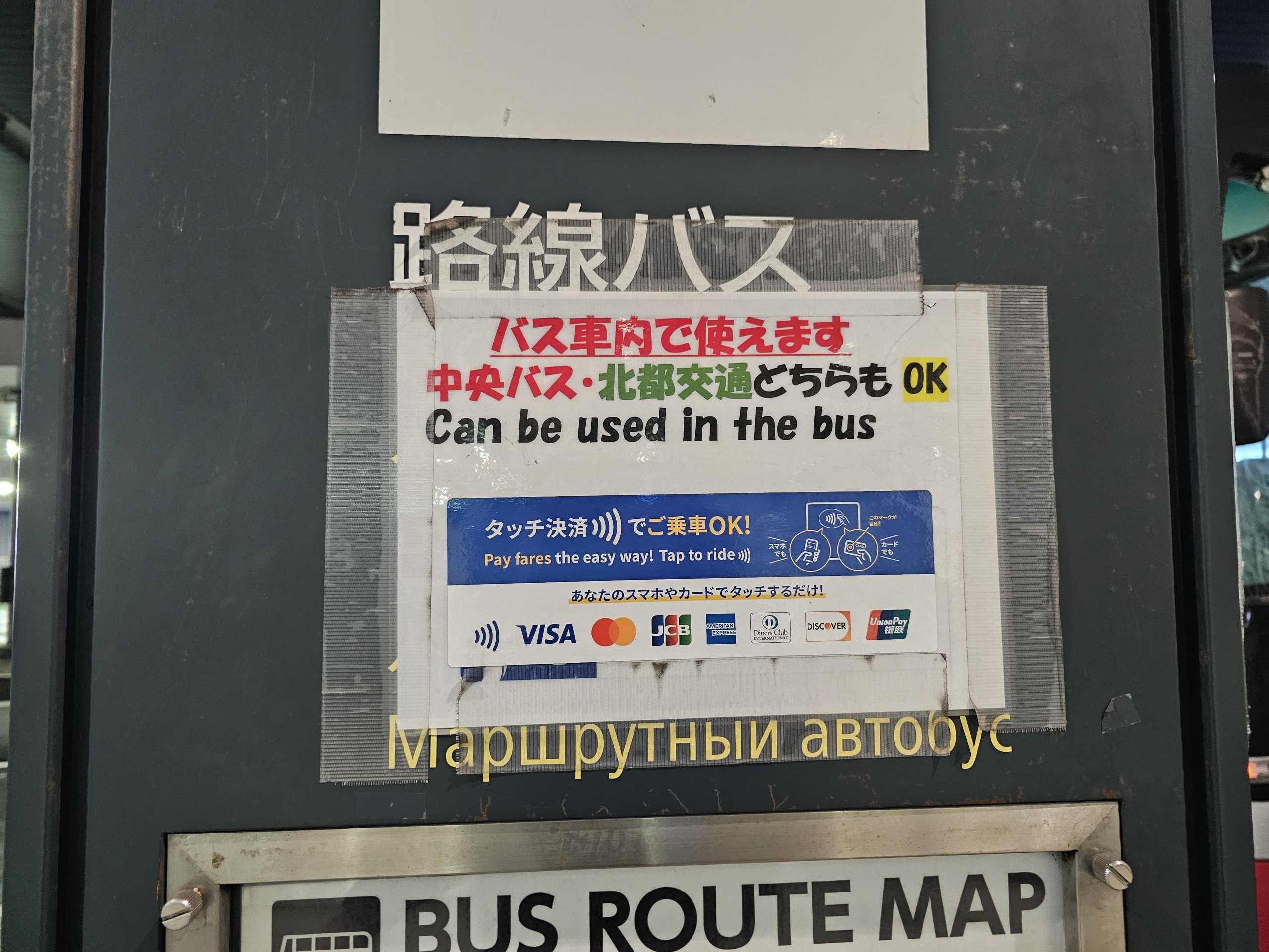 Arba galima atsiskaityti už bilietus visomis japoniškomis IC kortelėmis - jei turite tokią kortelę iš kitų kelionių į Japoniją, jums nereikia niekuo rūpintis, tiesiog pridėkite ją prie turniketo. Jei norite nusipirkti Kitaca kortelę, vėlgi tereikia turėti grynųjų pinigų.
