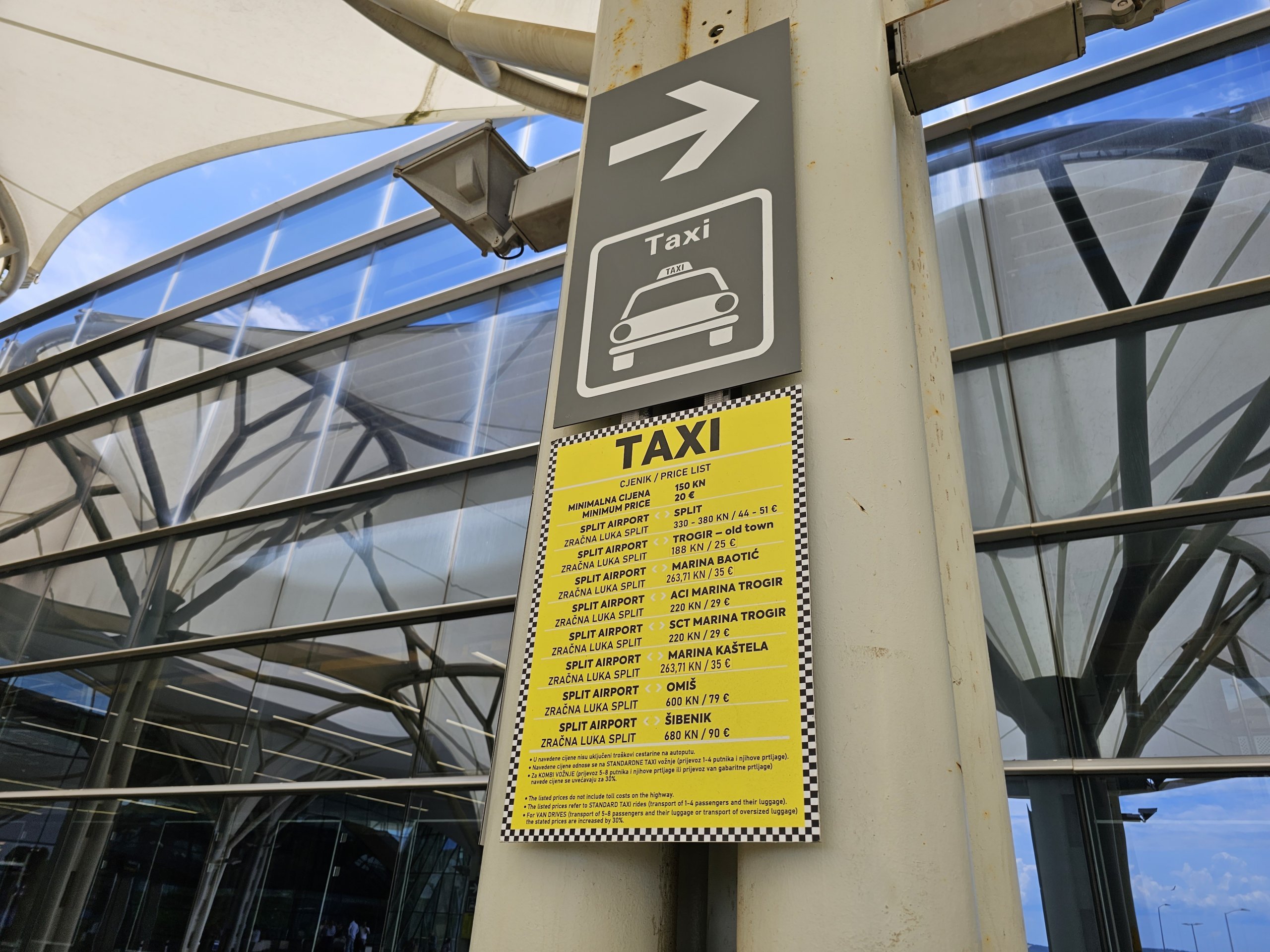 Taksi tarifai labai dideli, važiuodami į Splito centrą mokėsite apie 45 Eur , o į netoliese esantį Trogirą - apie 25 Eur.