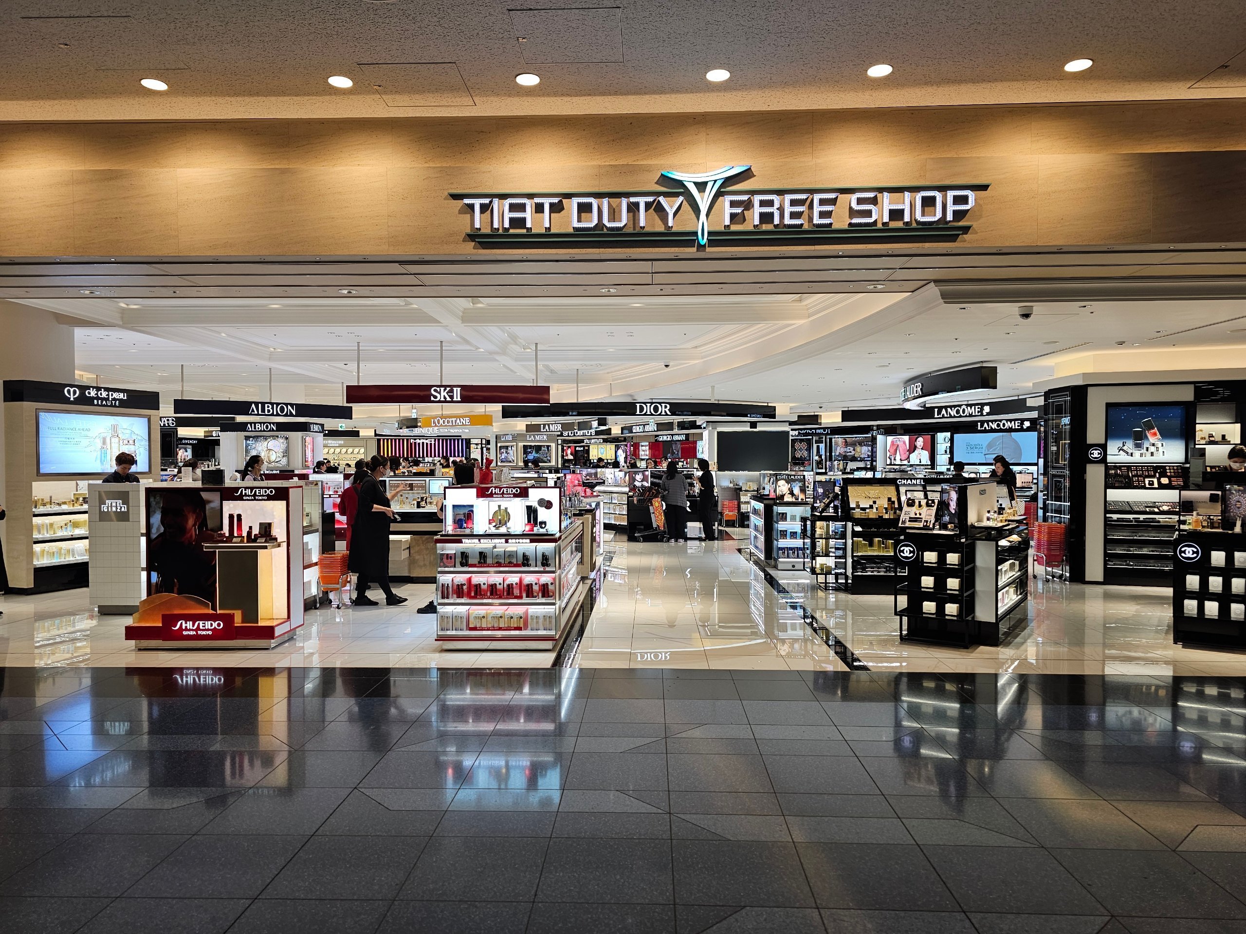Parduotuvės įsikūrusios viešojoje zonoje (daugiausia komunalinių paslaugų parduotuvės, mini turgeliai ir pan.) ir tranzito zonoje (daugiausia neapmuitinamų prekių parduotuvės ir prabangos prekių parduotuvės).