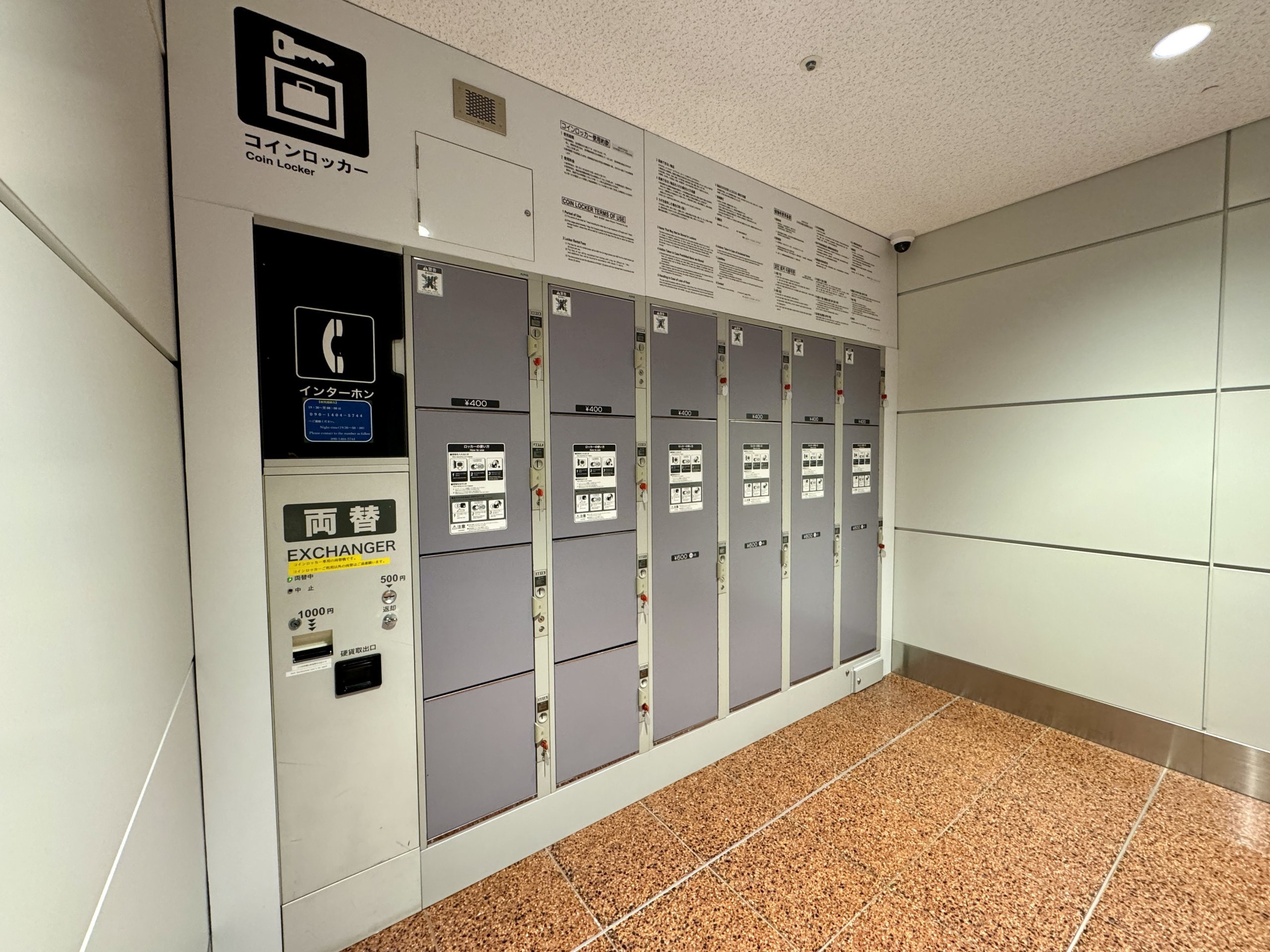 - 1 terminalas - dirba 8:00-19:30, kaina nuo 400 iki 1000 JPY per dieną, priklausomai nuo bagažo dydžio