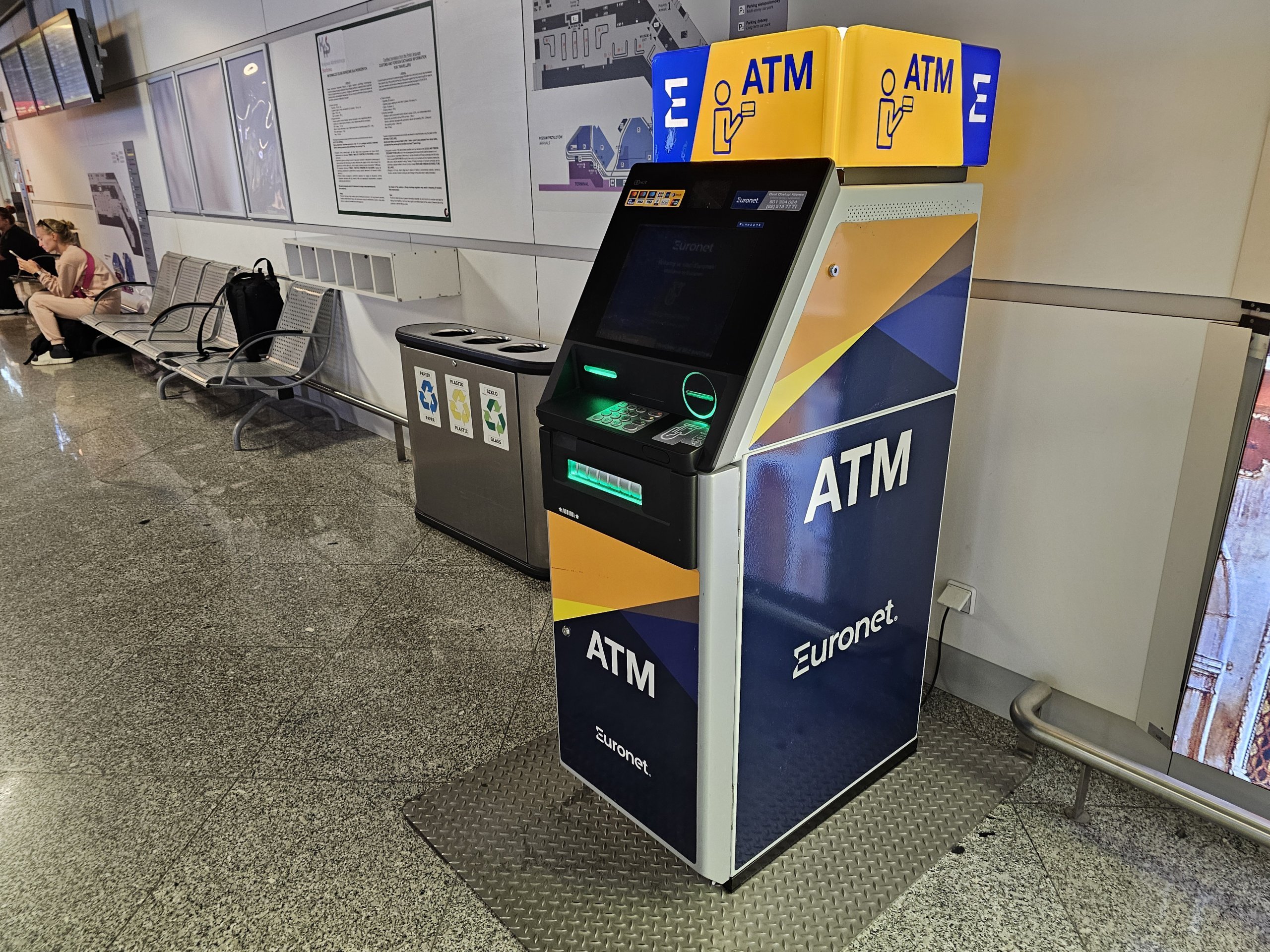 Oro uoste veikia tik "Euronet" bankomatai, kuriuose taikomi dideli pinigų išėmimo mokesčiai ir labai nepalankūs valiutos keitimo kursai.