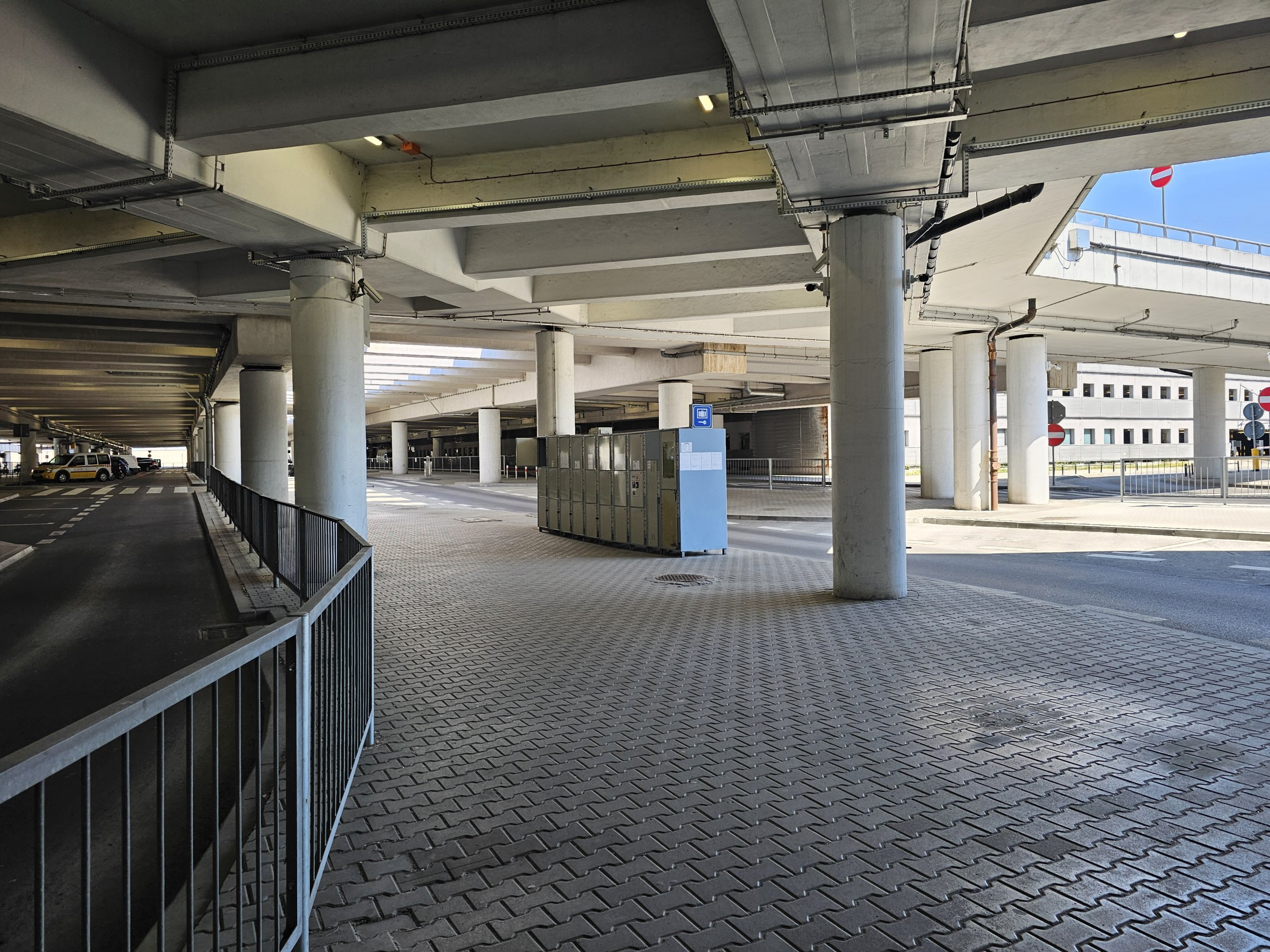 Galite naudotis tik automatinėmis spintelėmis ant šaligatvio šalia P1 automobilių stovėjimo aikštelės pastato. Priklausomai nuo bagažo dydžio, už dieną mokate nuo 22 iki 25 pln, o atsiskaityti galite tik kortele.