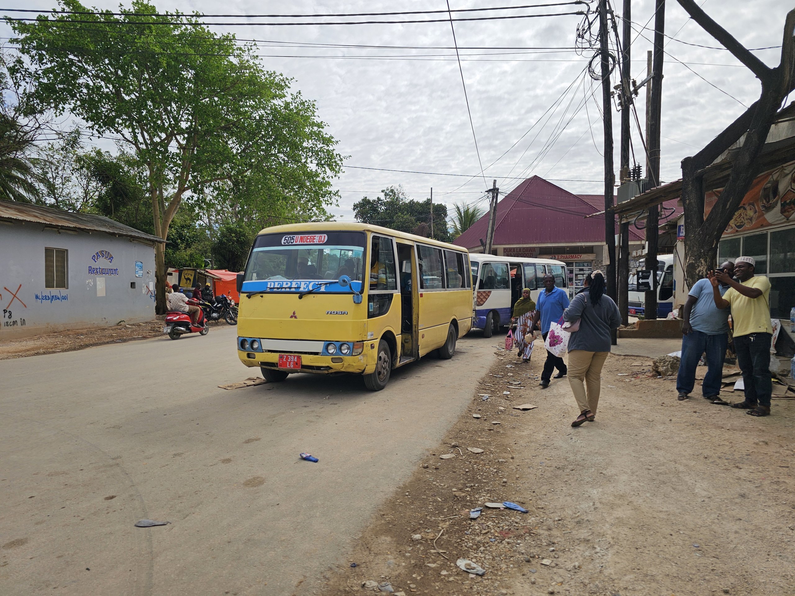 Maždaug už 500 metrų nuo terminalo stovi viešasis transportas - mikroautobusai (vadinamieji "dala-dala").