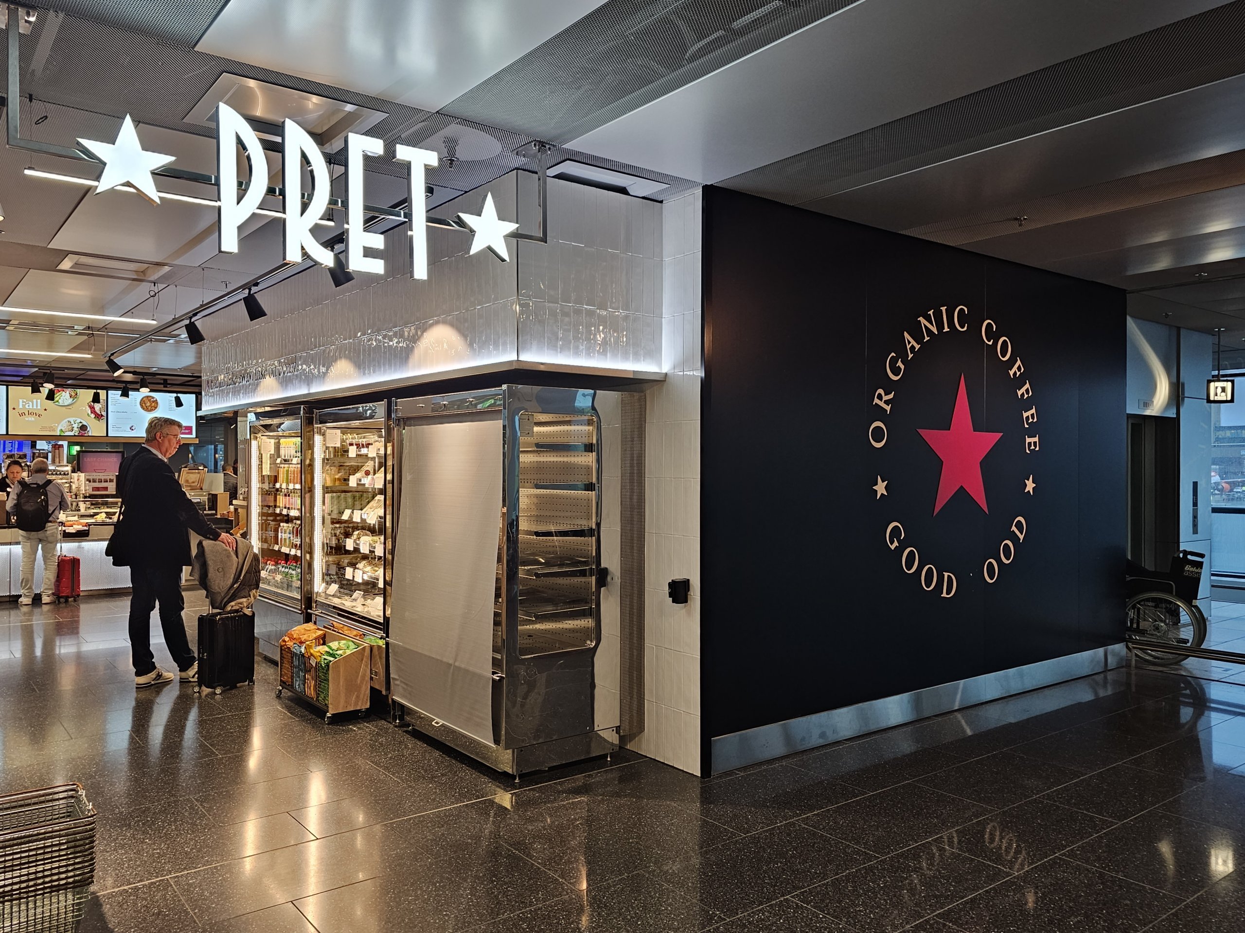 - Pret A Manger: užkandžiai išsinešimui - tranzito zonoje, išvykimo vartai A, dirba nuo 5:30 iki paskutinio išvykimo