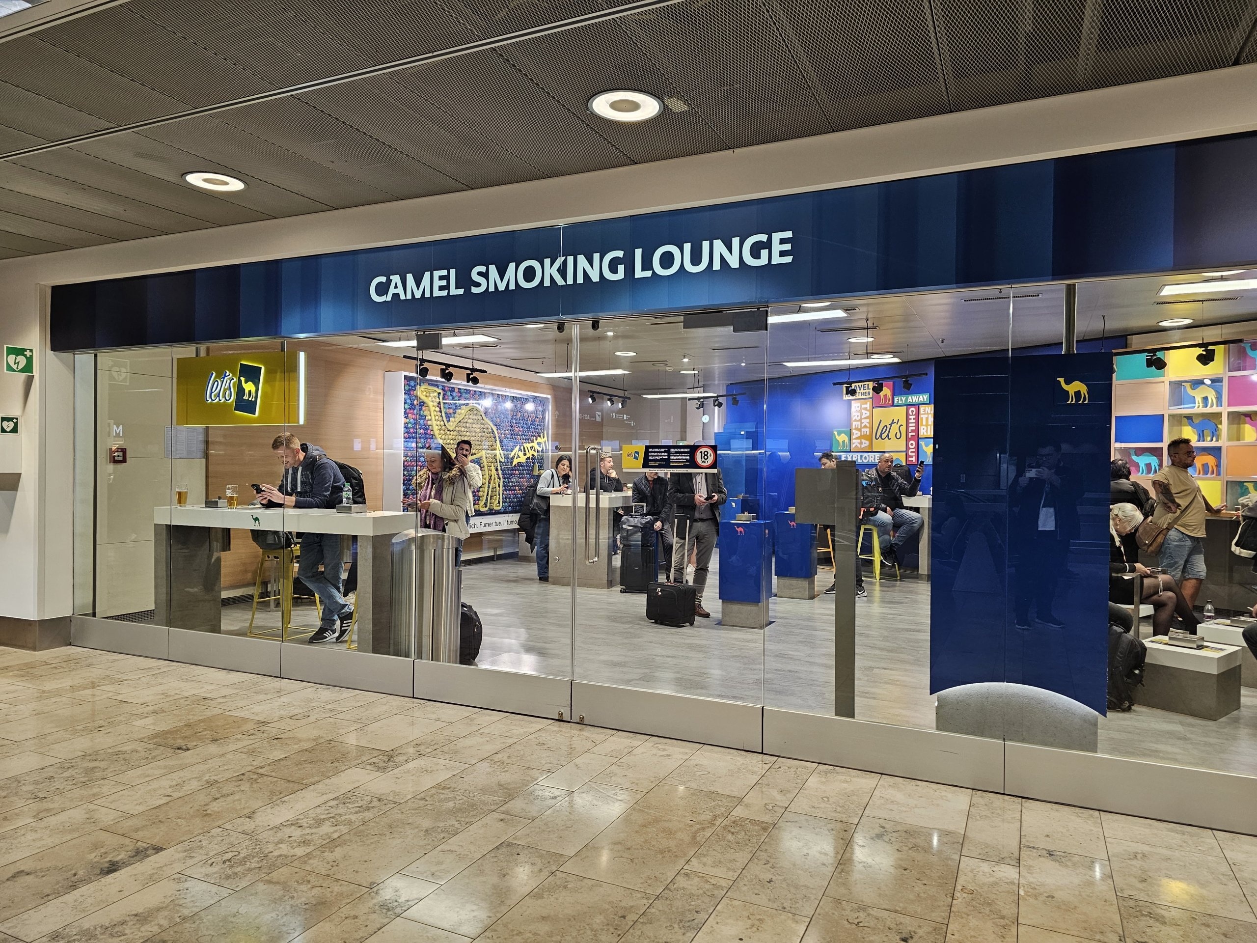 Uždarose, vėdinamose patalpose daugelyje vietų galima rasti viešojoje erdvėje ir po saugumo patikros. Atkreipkite dėmesį į ženklus "Raucherzone".