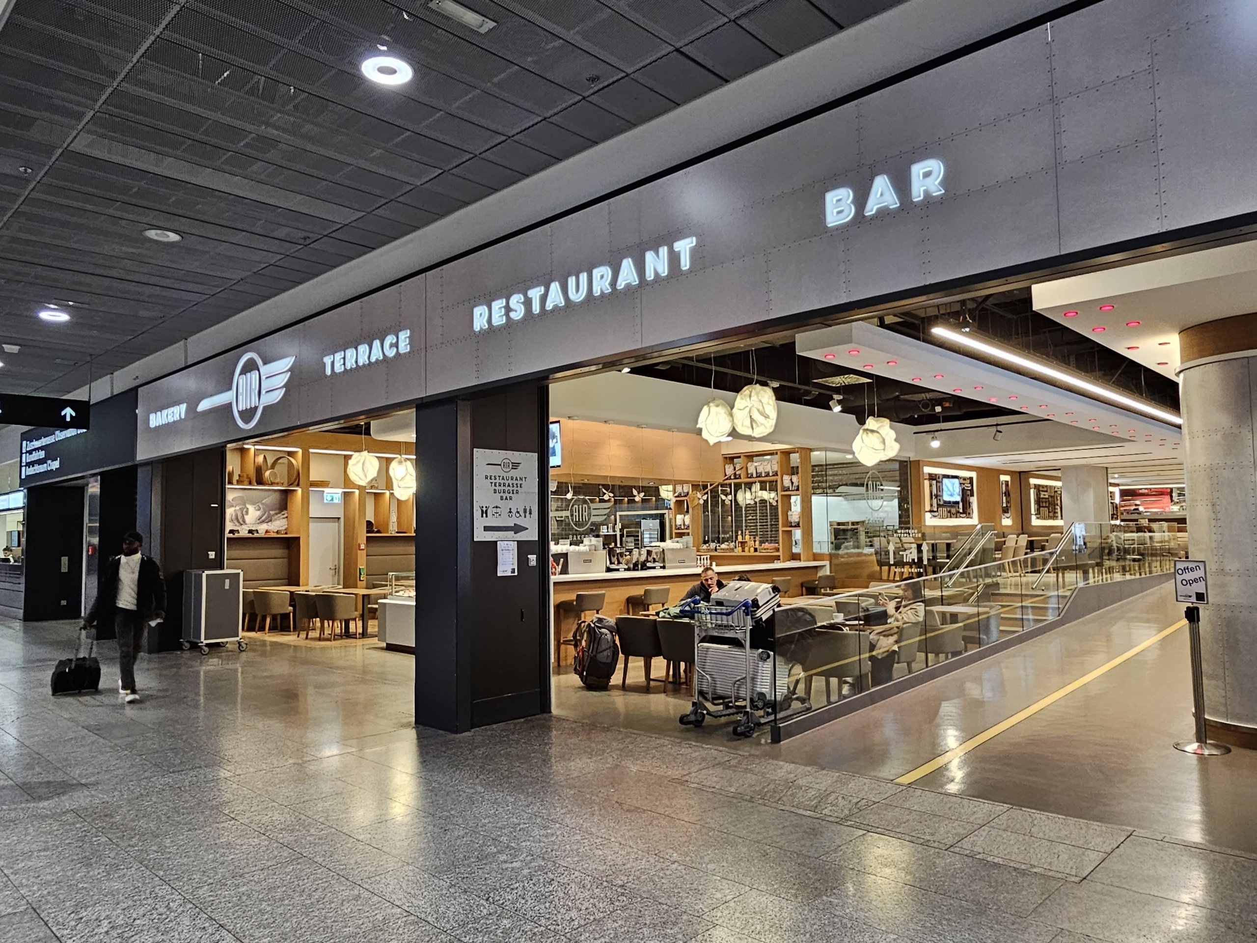- Pret A Manger: užkandžiai išsinešimui - tranzito zona, išvykimo vartai B, dirba nuo 5:30 iki paskutinio išvykimo