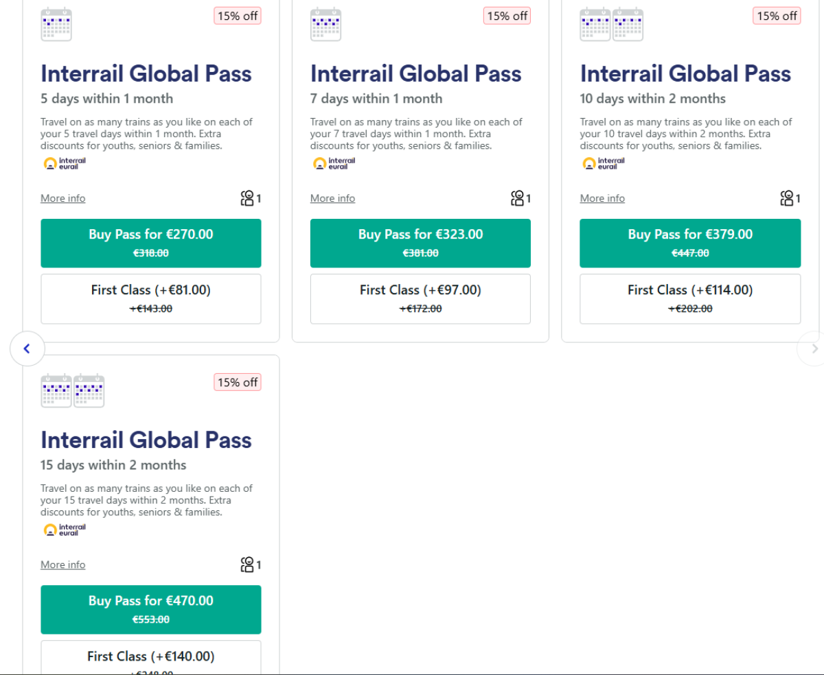 Neribotos kelionės traukiniais Europoje su 15 % nuolaida