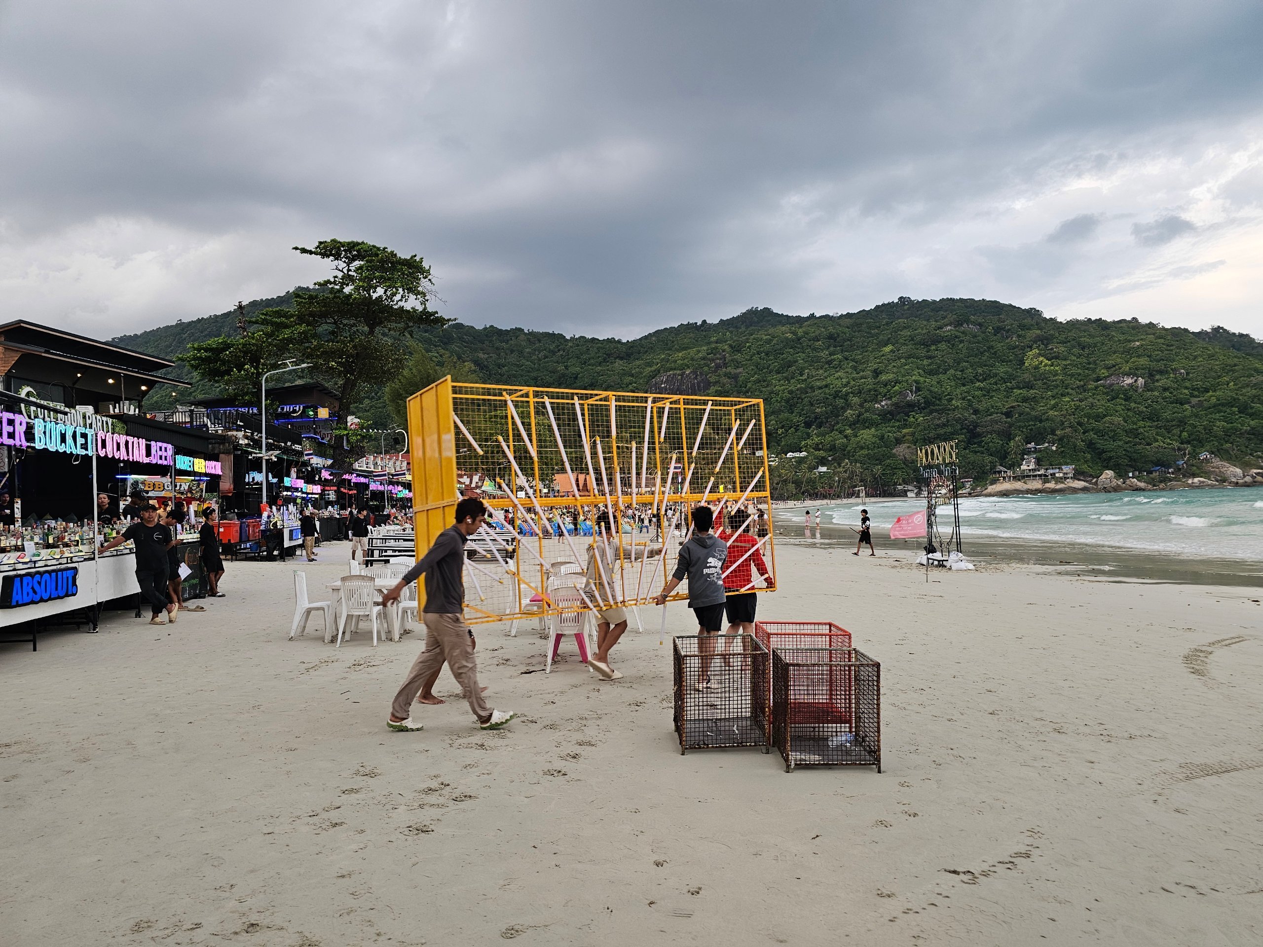 Pirmą kartą Haad Rin paplūdimyje apsilankėme po pietų, kai dar vyko pasiruošimo darbai.