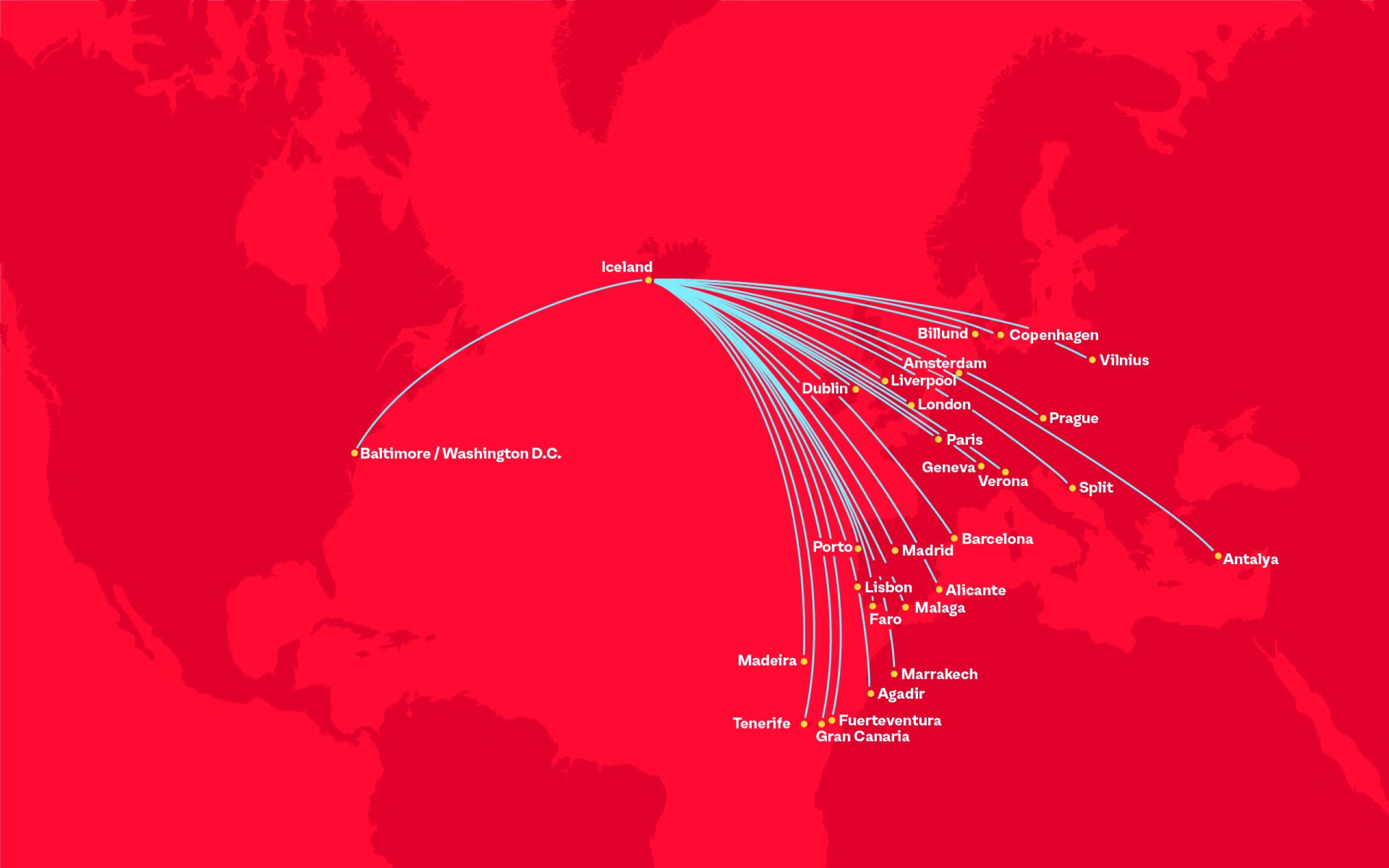 Skrydžiai į Šiaurės Ameriką buvo palaipsniui nutraukti, daugiausia dėmesio skiriant islandų vežimui į pajūrio atostogų vietas, taip pat maršrutams, turintiems priešingą potencialą - atvežti turistus į Islandiją. Pavyzdžiui, populiarūs buvo maršrutai iš Prahos PRG, Varšuvos WAW, Londono STN, Vilniaus VNO arba Paryžiaus CDG.