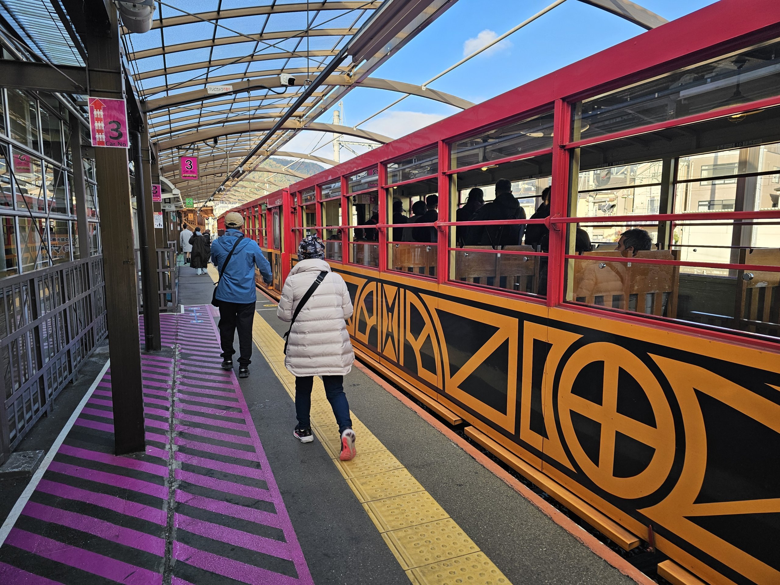 Traukinys kursuoja kartą per valandą tarp Aarašiyamos stoties, kurioje rasite daugybę netoliese esančių lankytinų vietų (pavyzdžiui, Tenryu-ji šventyklą, Bambukų mišką ir Beždžionių mišką), ir Kameokos miesto.
